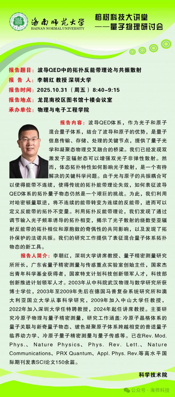 榕树科技大讲堂--量子物理研讨会.波导QED中的拓扑反能带理论与共振散射