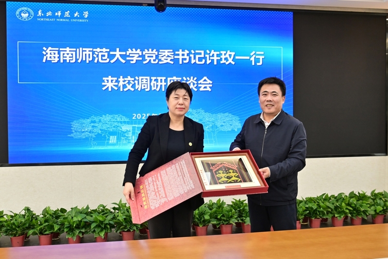 3月21日,我校党委书记许玫一行前往东北师范大学调研交流。东北师范大学党委书记李忠军,党委副书记兼副校长常青,党委常委、副校长严蔚刚,海南师范大学党委常委、副校长王瑜及相关部门负责人参加座谈。