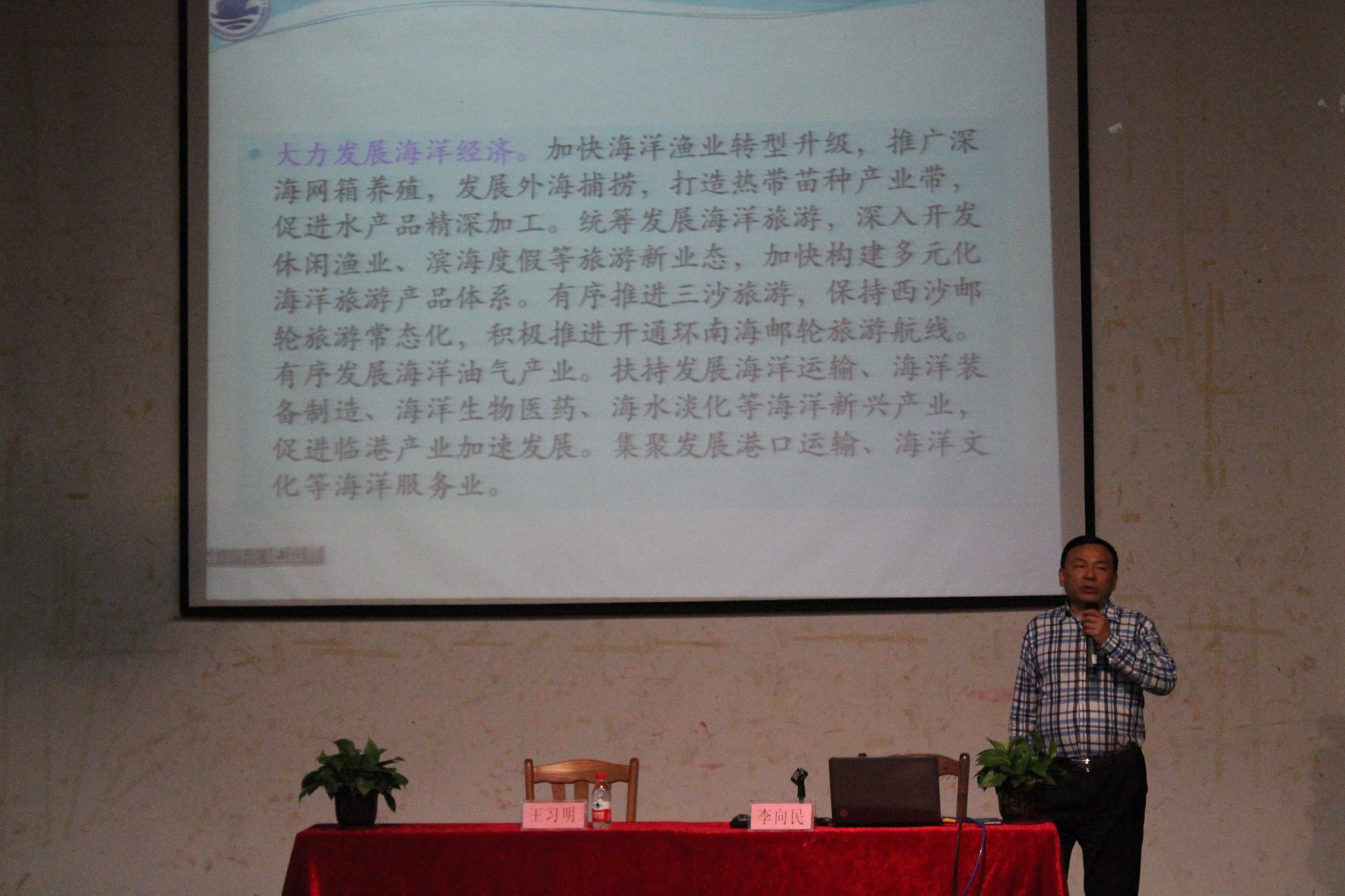 3月15日下午,海南师范大学桂林洋校区曾宪云报告厅举办了首场大学生思想政治理论课特聘教授讲座,此次讲座的主讲人为海南省海洋与渔业厅党组成员、海南省海洋与渔业科学院党委书记、院长李向民研究员,主题为《海洋经济与海南战略》,主持人为马克思主义学院院长王习明教授,马克思主义学院和政法学院的400多名大学生参加了讲座。