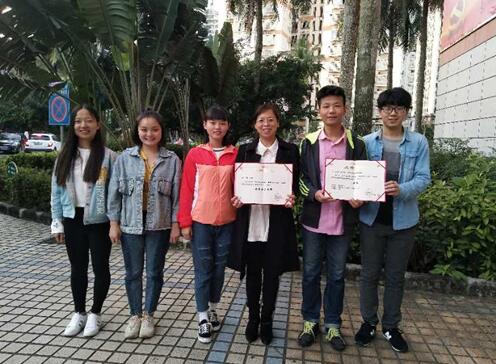获奖学生与陈红教授(右三)