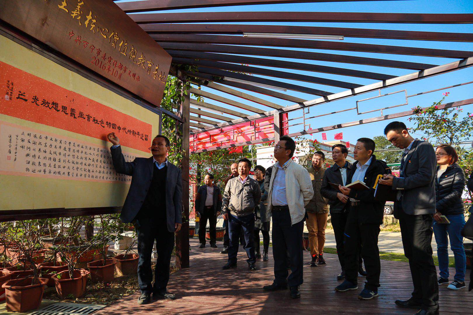 调研组参观万宁市溪边村书法文化长廊