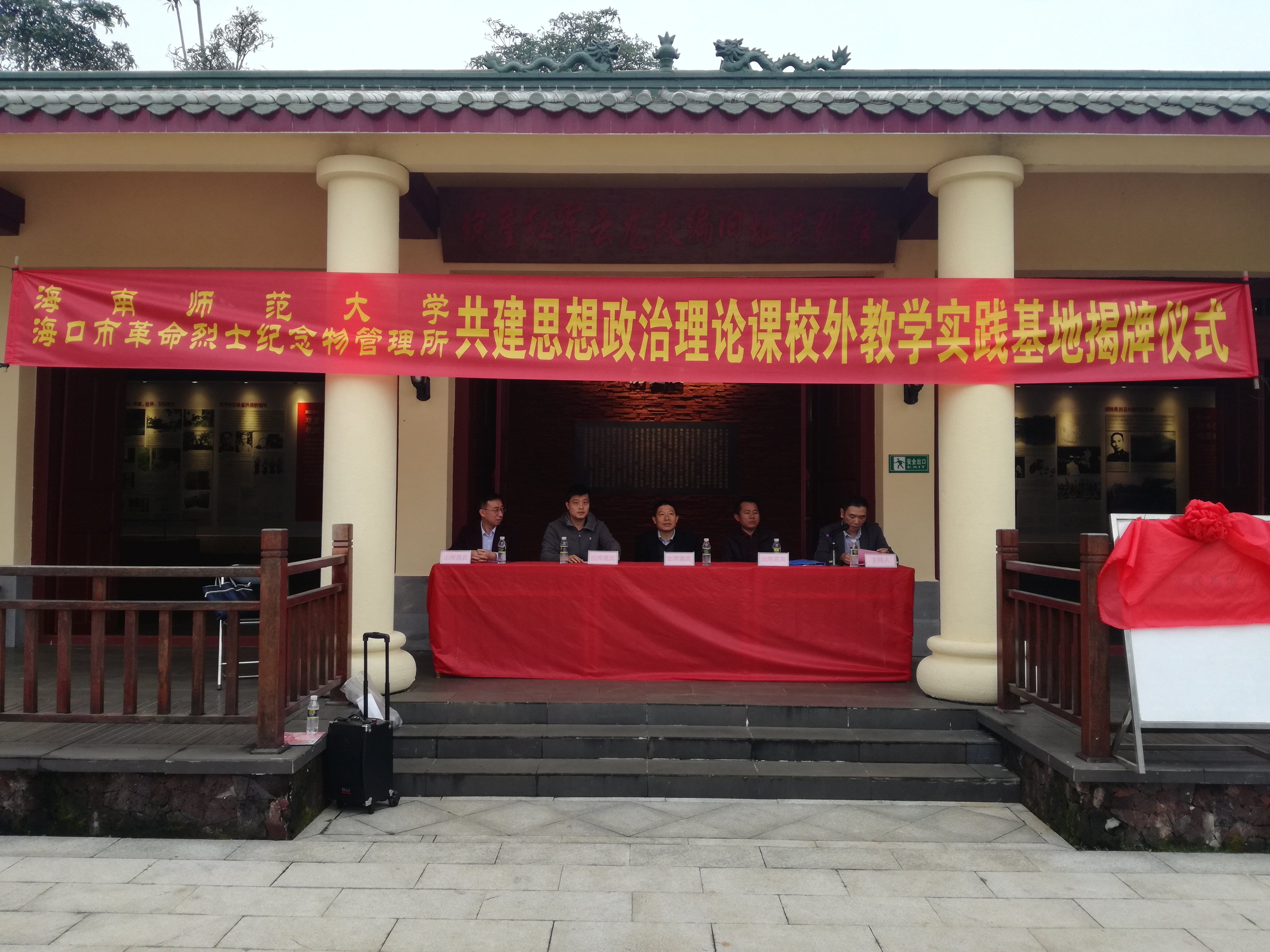 为深入贯彻党的十九大精神,加强大学生的革命传统和爱国主义教育,拓展我校大学生红色教育实践的渠道,丰富思政教学的手段、途径与教学资源。2017年12月29日,我校在海口市革命烈士纪念物管理所,与一同举行了“海南师范大学思想政治理论课外教学实践基地”挂牌仪式。我校宣传统战部、马克思主义学院及《中国近现代史纲要》教研室骨干教师、管理所所长夏冰等同志出席挂牌仪式。
