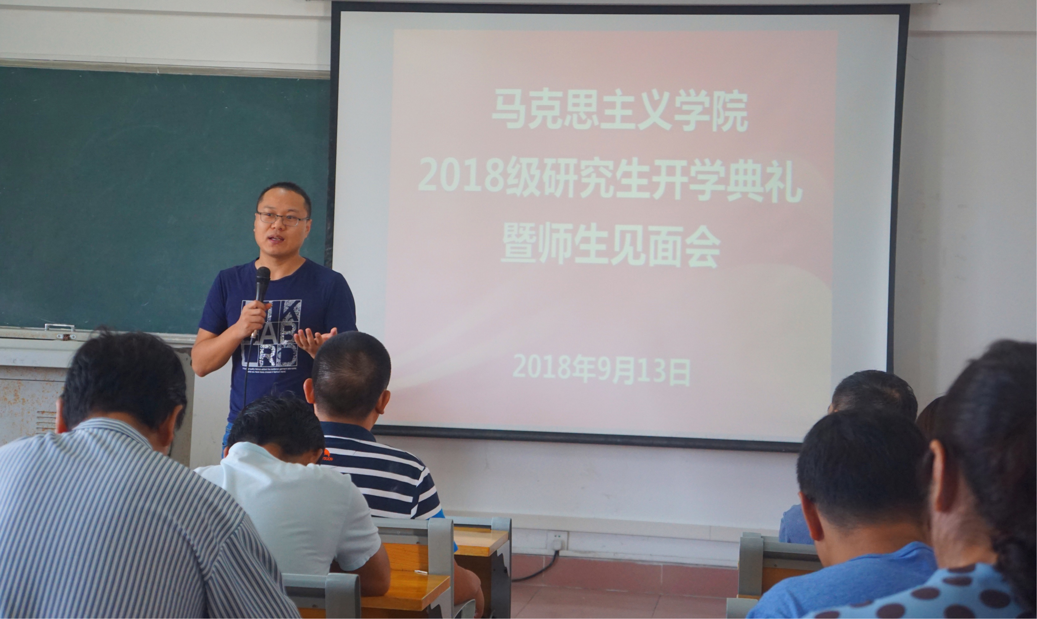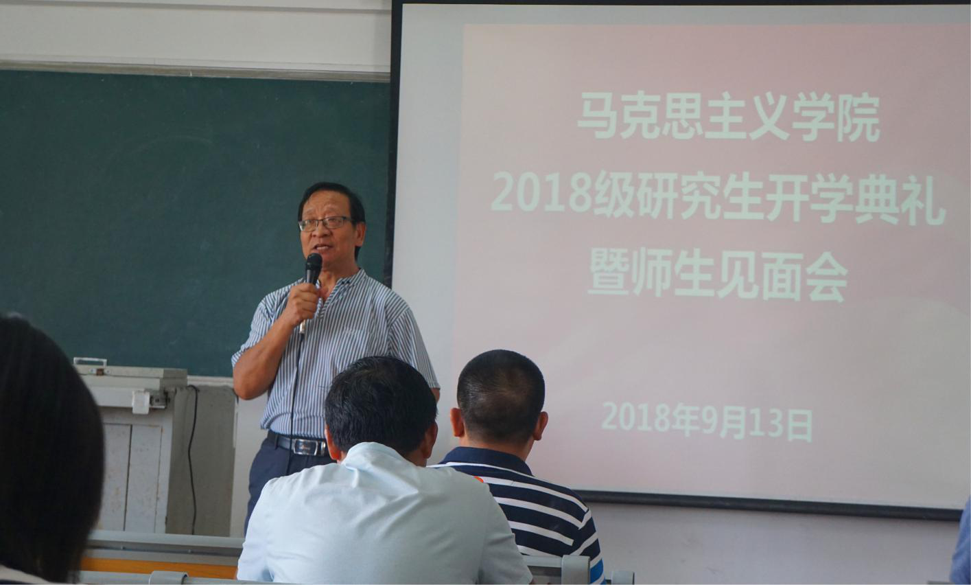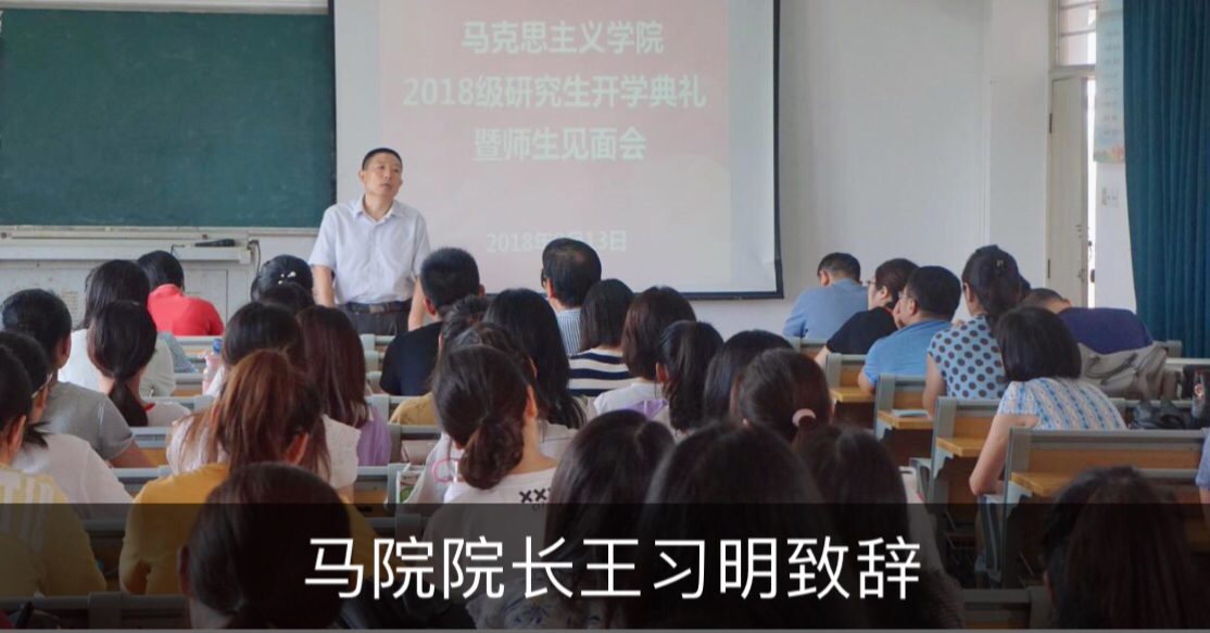 王习明院长代表马克思主义学院全体师生欢迎2018级研究生加入马院大家庭。王院长希望2018级研究生珍惜学习机会,做一个坚定的马克思主义信仰者、研究者、实践者和传播者,做到德、智、体、美、劳全面发展,在学术上快速成长,为我院马克思主义理论学科的提升创造新的辉煌。