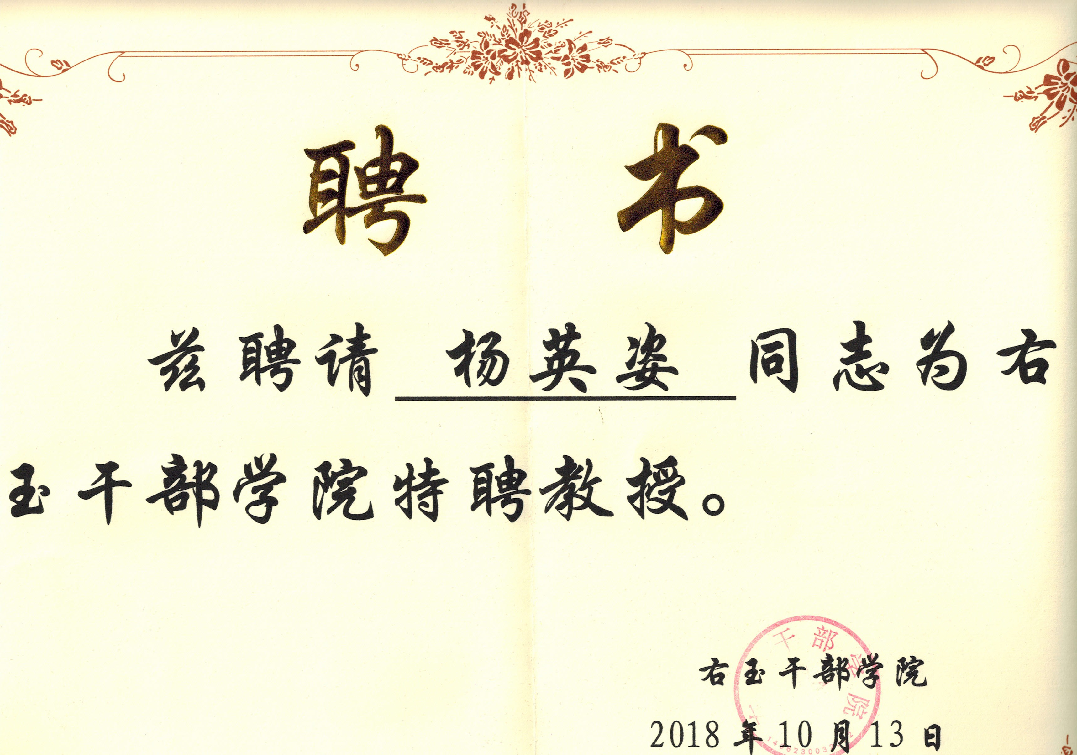 另外,杨英姿老师还被右玉干部学院聘为特聘教授。