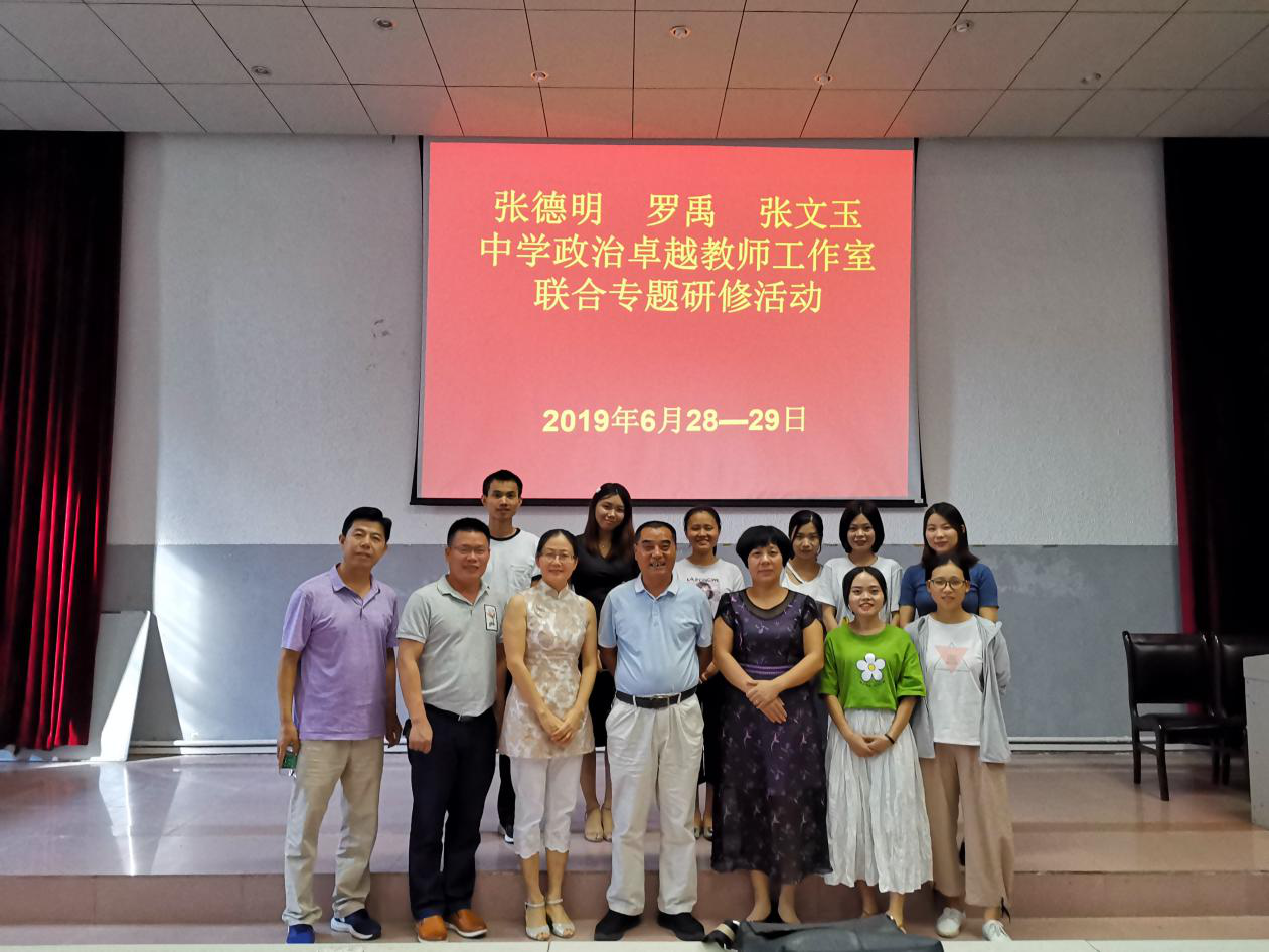 2019年6月28日--29日,我院2018级学科教学(思政)专业硕士研究生在陈连珠老师的带领下,参加了由张德明、罗禹、张文玉等海南省中学政治卓越教师工作室联合举办的专题研修活动。除校外专家和我院师生外,参加本次活动的还有来自省内各市县的高中政治骨干教师。