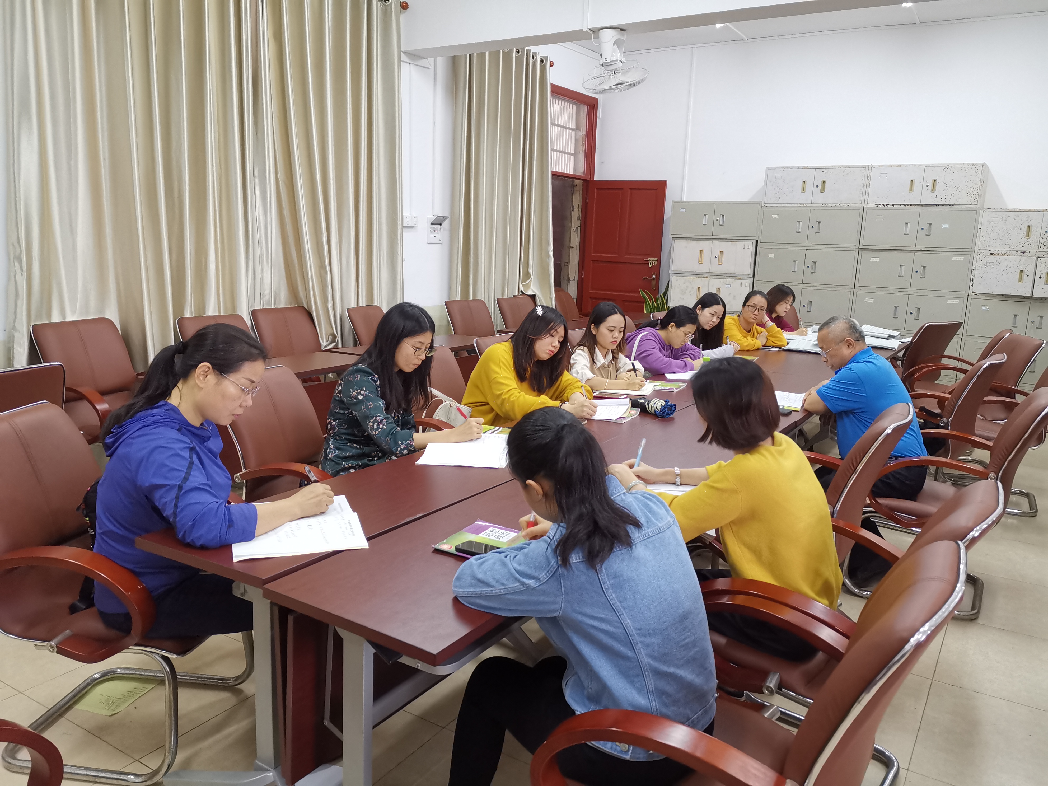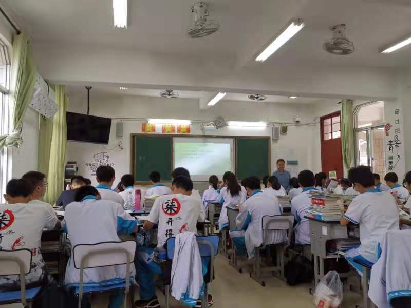 2019年12月19日下午,为了进一步检验马克思主义学院2018级专硕实习小组的实习成果,陈连珠教授带领2018级学科教学(思政)专业全体学生到海南省国兴中学参加罗听评课活动。参加此次活动的还有马克思主义学院的张欢老师以及海南省国兴中学的指导教师。听评课对象是我院18专硕实习生罗毓涓同学,授课对象为高一(7)班,授课内容为《贯彻新发展理念》。