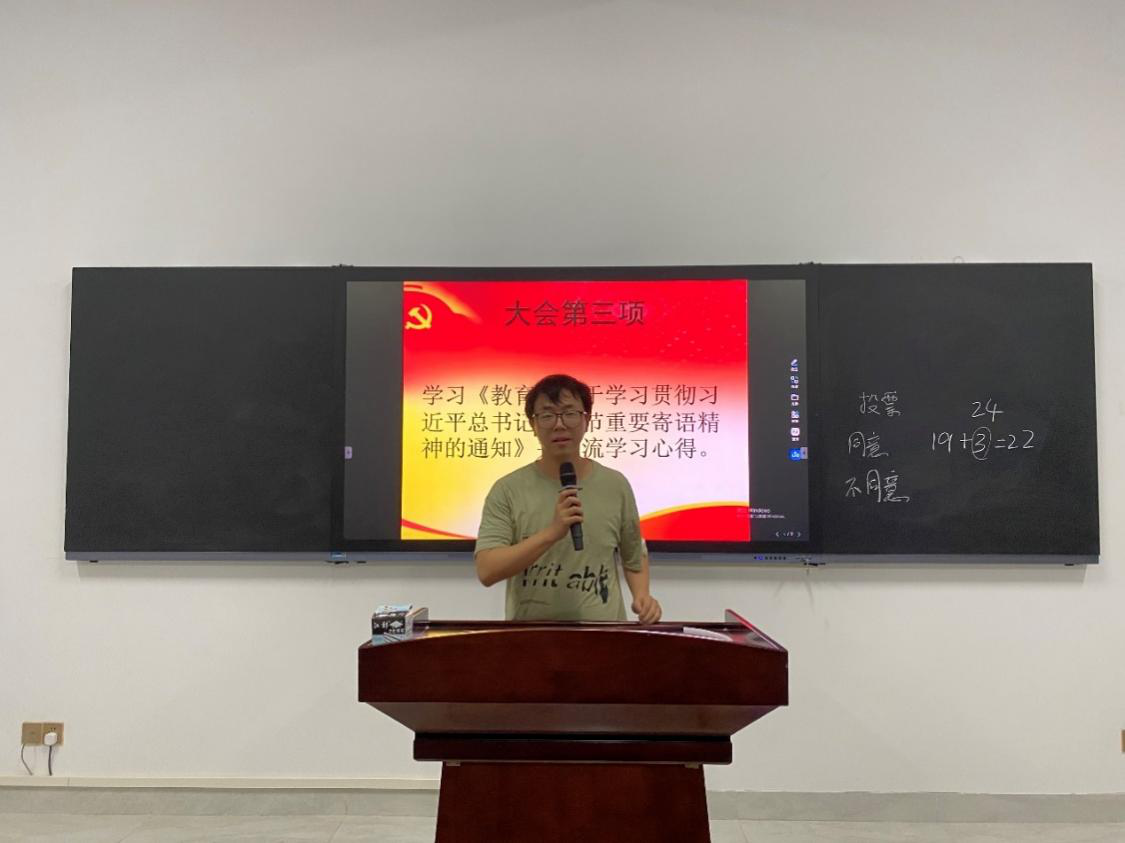 博士生党支部通过现场交流和线上交流相结合的方式召开了支部党员大会。他们不仅认真学习了习近平总书记教师节寄语精神,领悟其重大意义和精神内涵,而且,挑选党员代表就寄语精神的学习发表自己的看法。