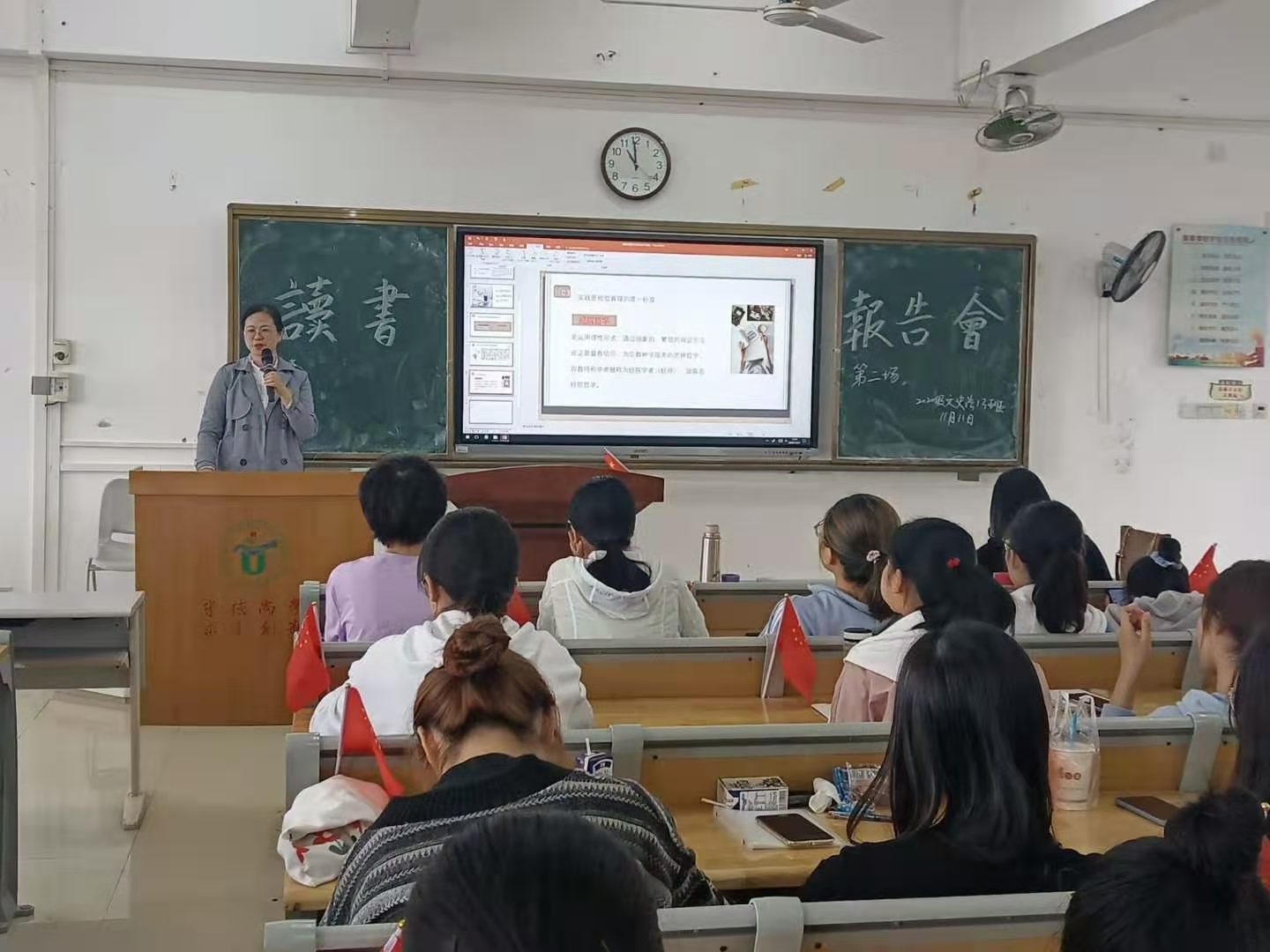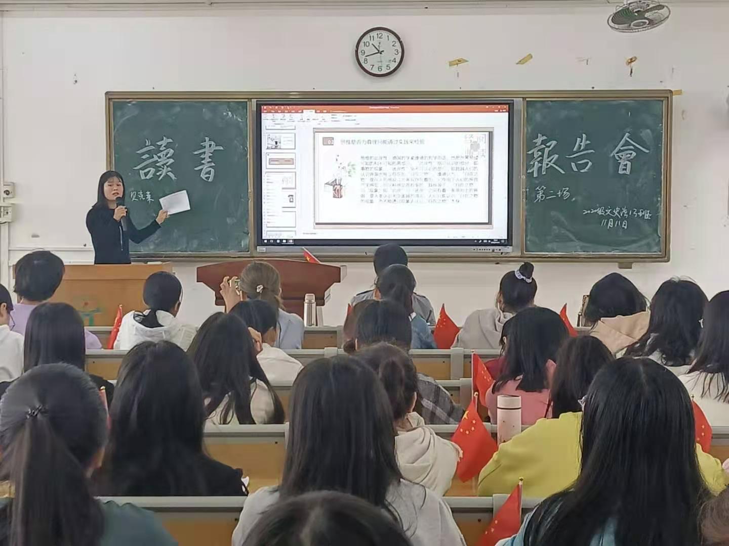为了培养我们良好的读书习惯,班主任王云华老师组织2020级文史法13班全体同学举办了第二次读书报告会。第二次读书报告会于11月11日在公共楼603举行,本次报告会邀请到了辅导员李哲漫老师作为点评嘉宾。