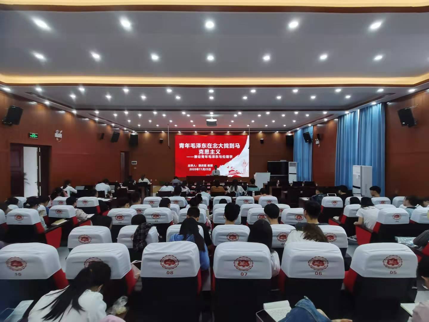 11月25日上午9点,著名党史专家、中央党史研究室宣传教育局原副局长、中宣部图书阅评员、河南大学兼职教授薛庆超在新大楼201报告厅,为马院师生作了一场题为“青年毛泽东在北大找到马克思主义——兼论青年毛泽东与伦理学”的学术讲座。讲座由马克思主义学院党委主要负责人兰岚主持并做总结讲话。学院部分教师、研究生及本科生参加了本次讲座。