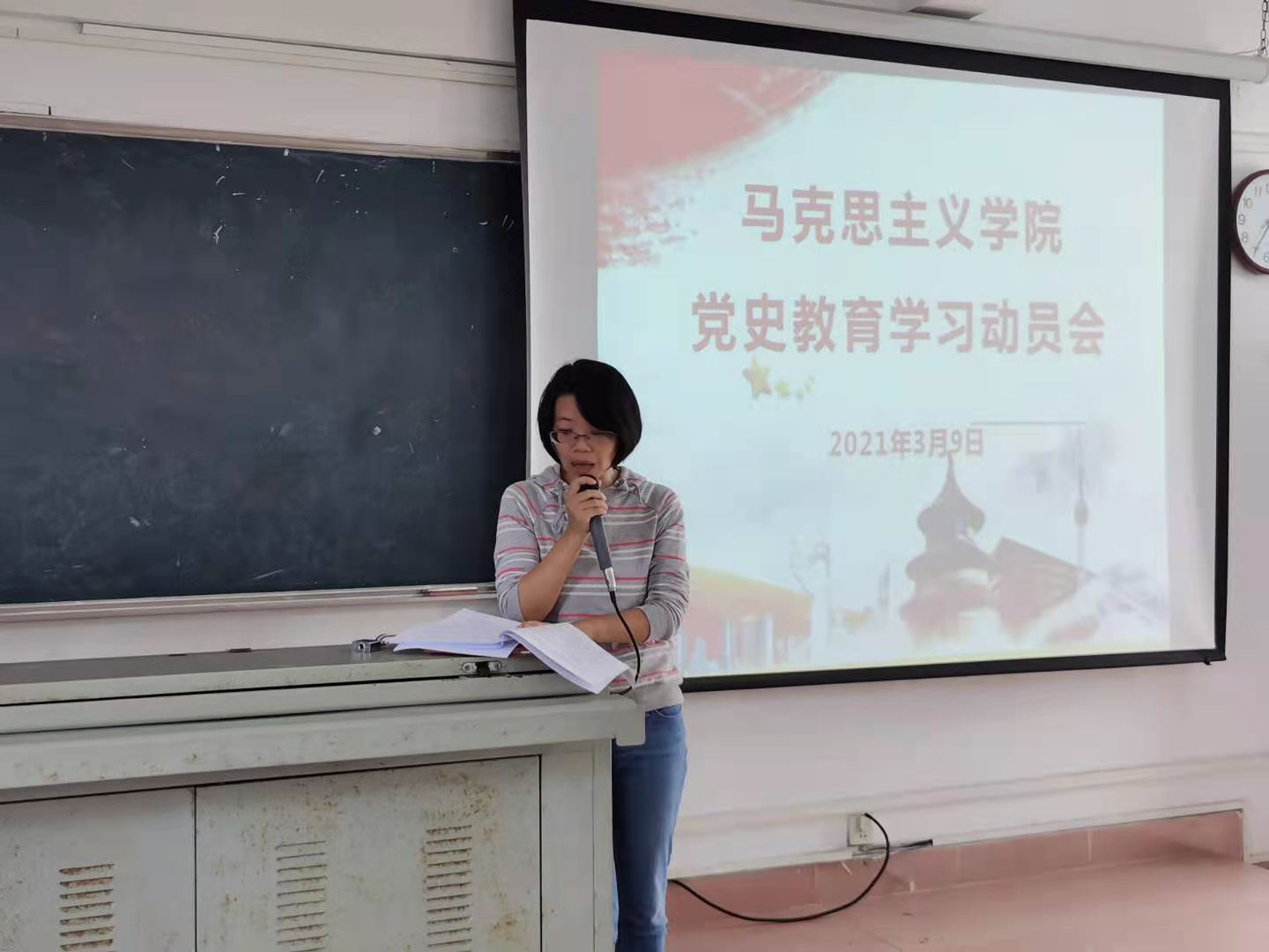 3月19日15:30,马克思主义学院在田楼503召开党史学习教育动员部署会,会议由学院党委书记兰岚主持,全院无课教职工悉数参会。