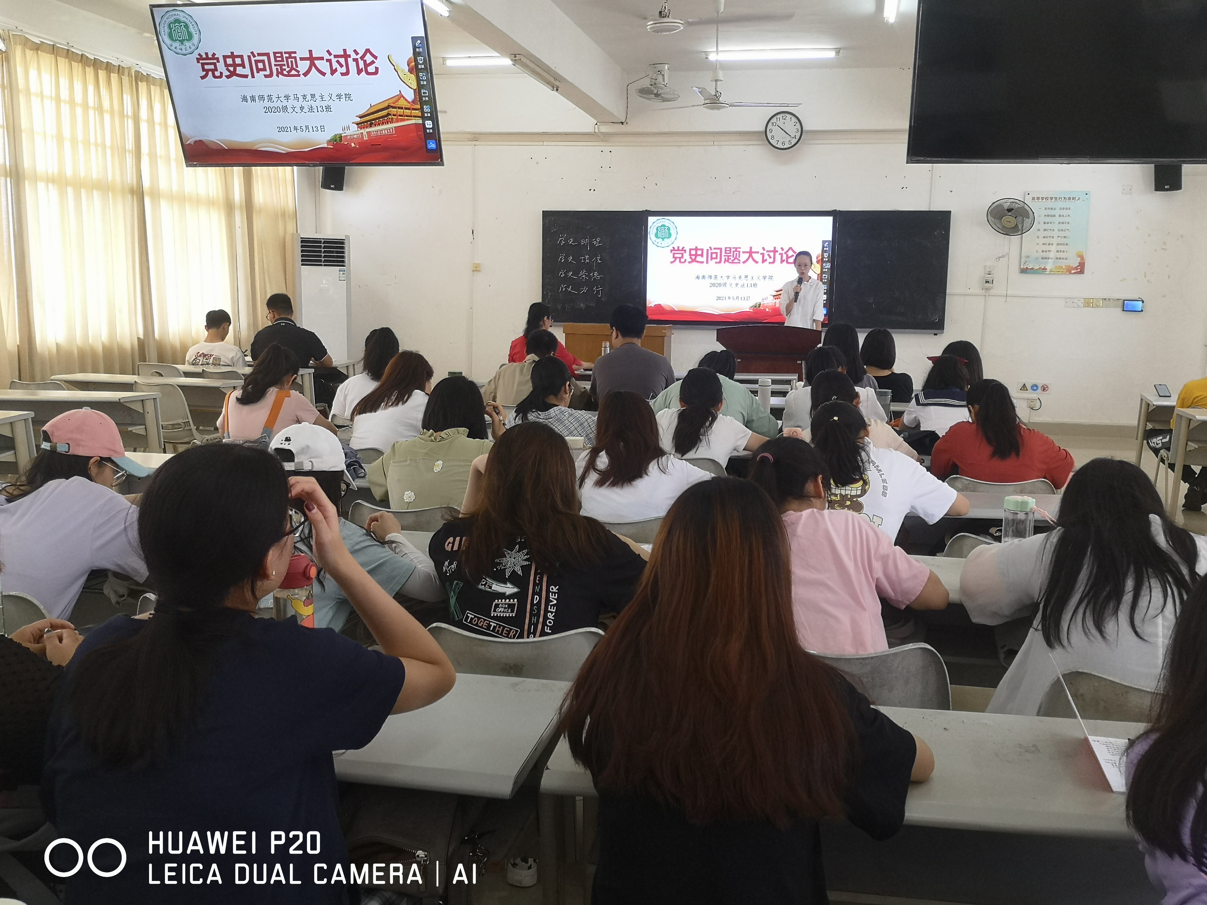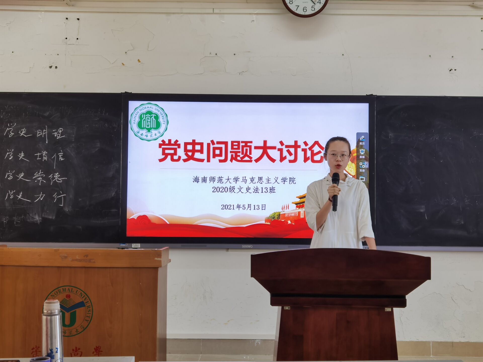 党史学习教育开展以来,共青团中央深入学习贯彻习近平总书记在党史学习教育动员大会上的重要讲话精神,各地团组织迅速行动,引导广大团员青年厚植爱党、爱国、爱社会主义的情感,在青少年中掀起党史学习教育热潮。为深入贯彻习近平总书记关于青年学生学习党史的号召,马克思主义学院2020级文史法13班于5月13日上午10:00在公共楼607举行了本学期最后一次读书报告会活动——党史研讨会。本次研讨会由班主任王云华老师主持,辅导员李哲漫老师为点评嘉宾。