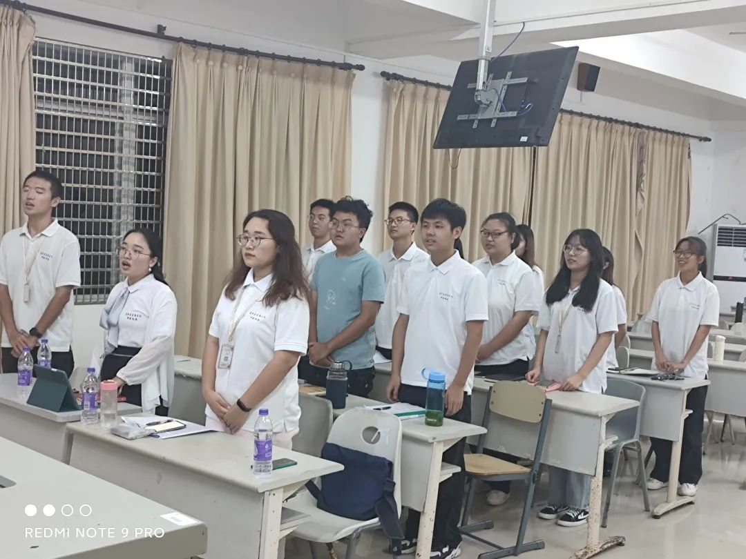 最后,青马协会理事长李震邦带领大家起立齐唱《国际歌》,歌声震撼,荡气回肠,让会场的气氛达到了高潮,使同学们对中国共产党的感情进一步加深!