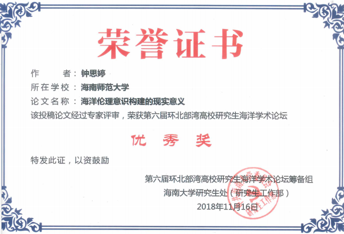 我是钟思婷, 2011级思想政治教育专业学生。没有想到在十年之后,能够作为优秀毕业生在学院留下属于自己的一些只言片语,感到很荣幸。2011年9月,我成为了一名大学生,我充满新鲜感地走在校园里,拥抱属于自己的大学时光。当然,我没有想到我在这个校园里还完成了我的研究生学业。