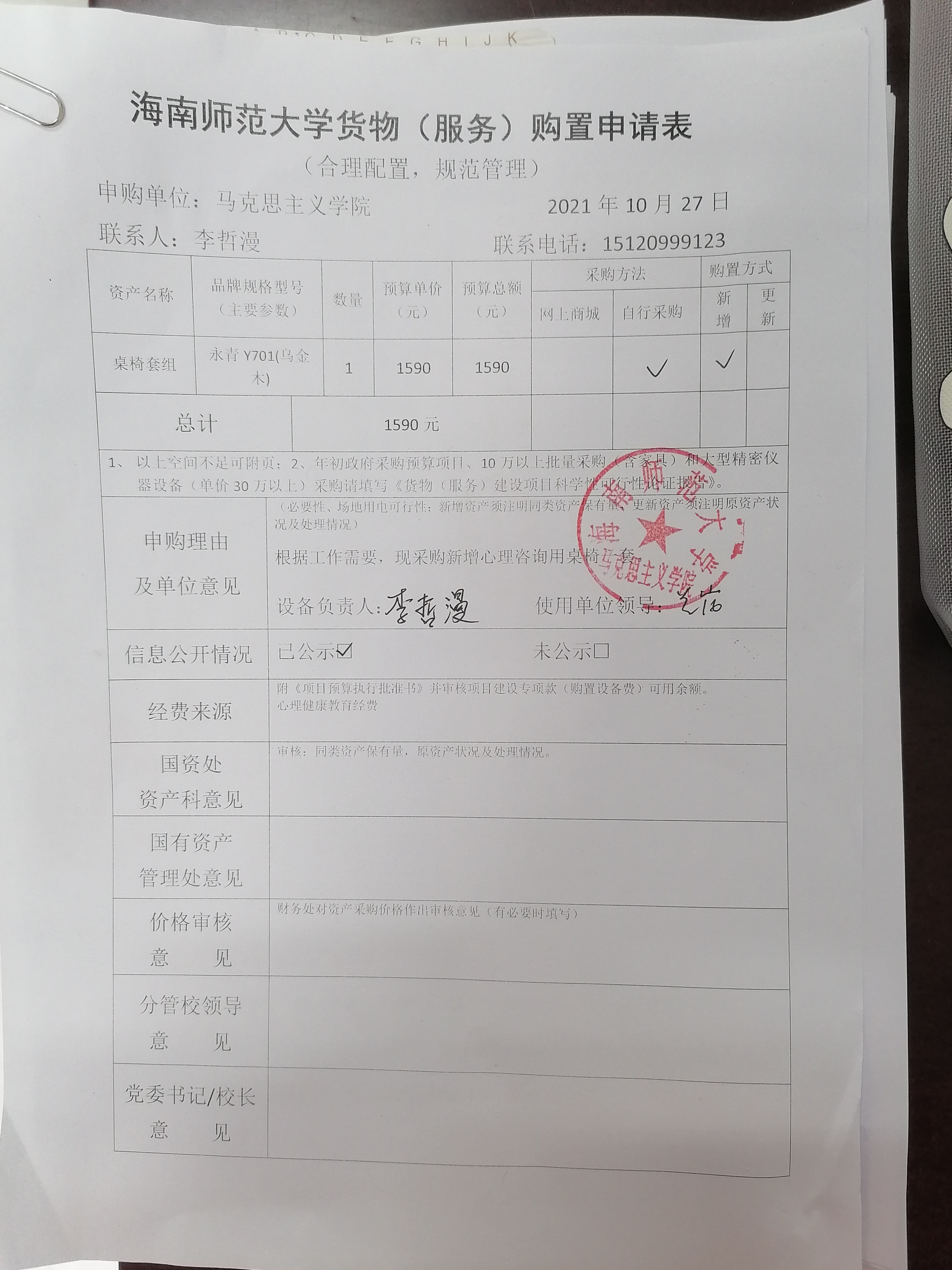 【信息公开】固定资产采购(桌椅套组)