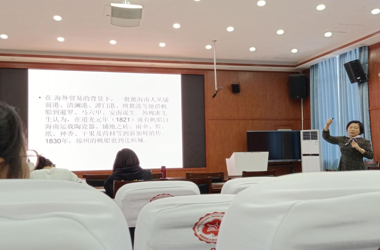 为了了解和学习海南华侨历史文化,11月9日15:00,由唐若玲老师主讲的《海南华侨的前世今生》讲座,在马院报告厅如期进行。