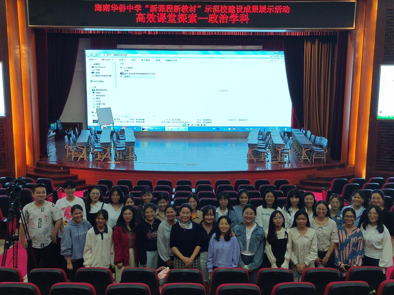 在新高考背景下,为了更好地适应高考和实现学生的素养落地,就必须重视课程与教材的开发和应用。2021年11月15日下午,海南华侨中学开展以“新课程新教材背景下高效课堂探索”为主题的示范校建设成果展示活动。海南师范大学马克思主义学院陈连珠教授带领本院学科思政专业的2020级部分学生和2021级全体学生,聆听和学习本次示范课展示活动。
