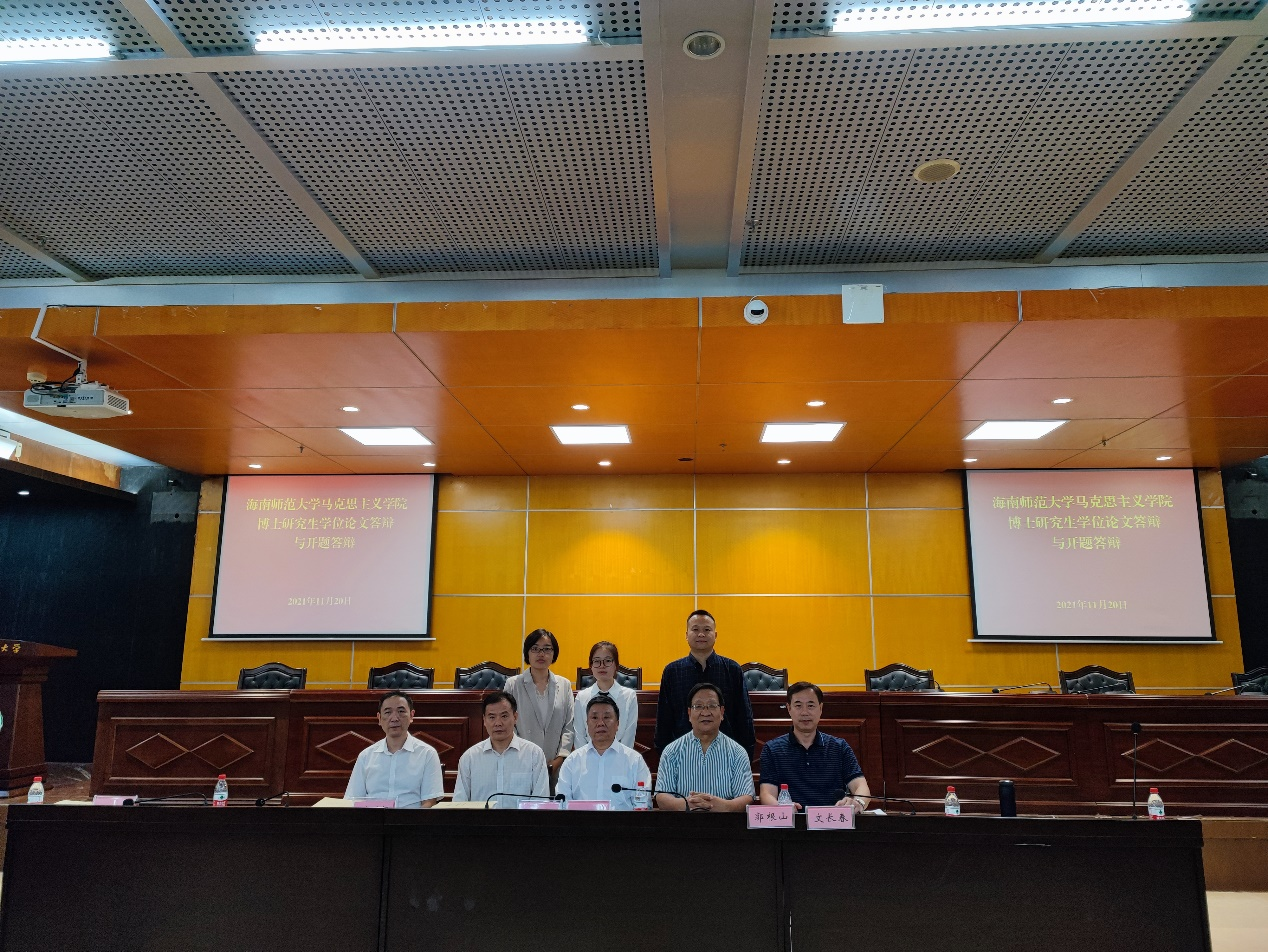 2021年11月20日上午8时,我院在龙昆南校区图书馆10楼会议室顺利举行博士研究生学位论文答辩与开题答辩会。本次答辩会由我院副院长陈红教授主持,答辩主席为海南大学马克思主义学院院长张云阁教授,答辩委员分别为海南大学马克思主义学院林国标教授,海南师范大学马克思主义学院郭根山教授、文长春教授、丁匡一副教授。我院部分博士研究生和硕士研究生积极参与本次答辩会。