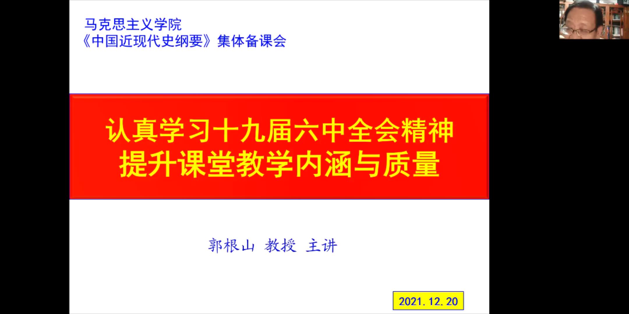 (郭根山教授为教研室老师分析党的十九届六中全会融入《纲要》课教学的几个内容)