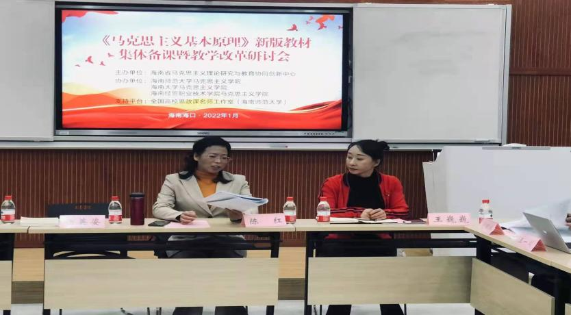 为了提升课堂教学和实践教学实效,进一步推动《马克思主义基本原理》课程教学方法改革,2022年1月13日海南省马克思主义理论研究与教育协同创新中心、海南师范大学马克思主义学院、全国高校思政课名师工作室(海南师范大学)、海南大学马克思主义学院原理教研室、海南经贸职业技术学院马克思主义学院原理教研室协同举办了集体备课会,会议主要讨论了《马克思主义基本原理》课堂教学改革、实践改革创新、新版教材授课侧重点以及党的十九届六中全会精神融入课堂四个方面问题。