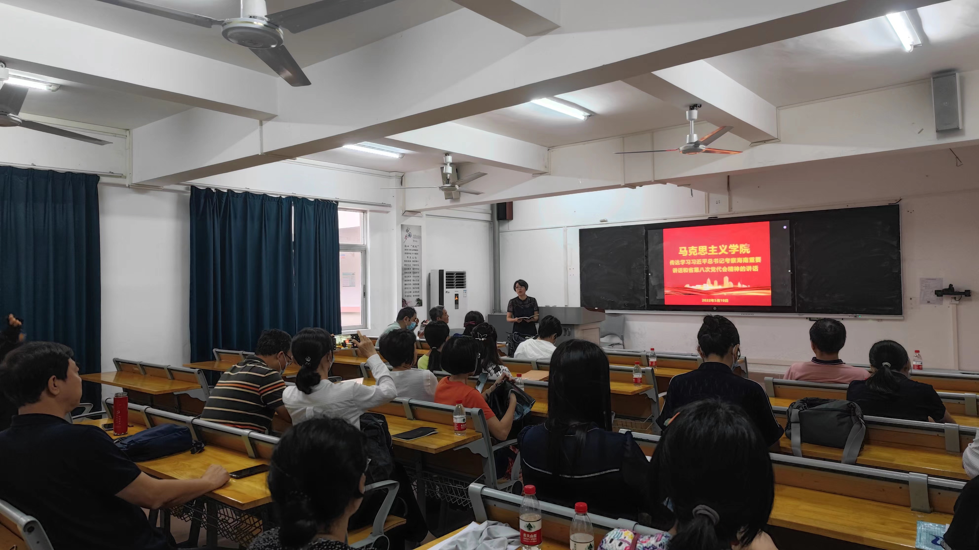 2022年5月10日下午16:45,马克思主义学院全体教职工在田家炳教育书院405教室召开重要精神和文件专题学习会议,会议由马克思主义学院党委书记兰岚主持。