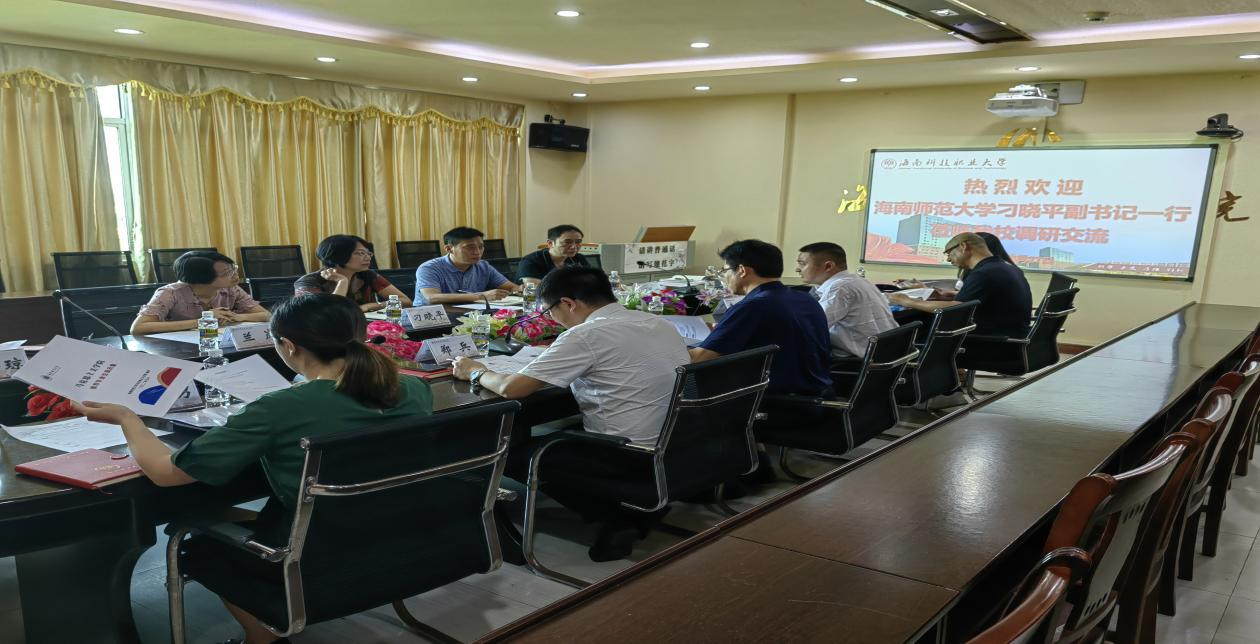 刁晓平副书记感谢海南科技职业大学长期以来对海南师范大学的支持与对我校毕业生的认可,刁书记重点介绍了海南师范大学的学科概况和研究生学位点情况,表达了本次“访企拓岗”工作背景及目标,希望双方能够优势互补,在人才培养、科学研究、社会服务等方面的合作共建,拓展合作领域,为海南自贸港的发展培养和留住优秀人才。