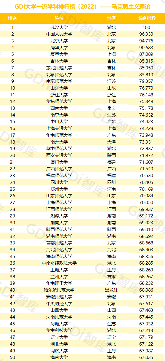 (GDI大学一流学科排行榜(2022)——马克思主义理论)