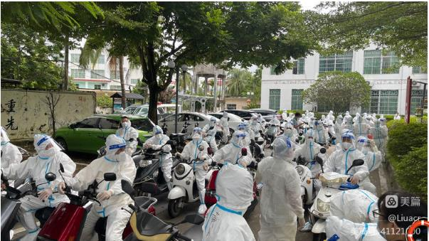 (刘荣老师驻守关卡并为抗疫志愿者分发物资)