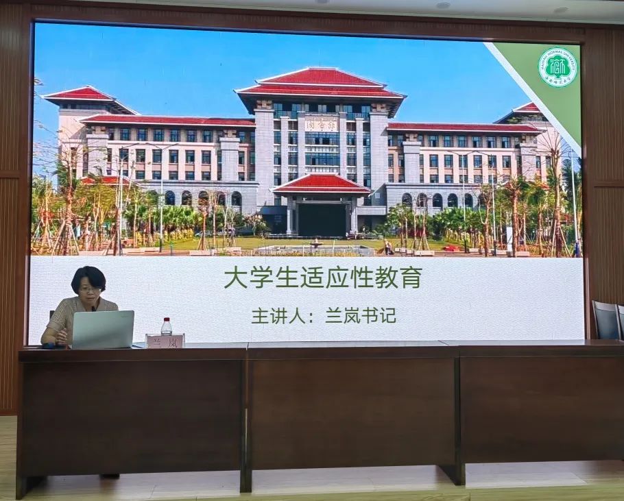 随后,党委书记兰岚老师为新生们开展了适应性教育。老师就如何适应新的生活环境、如何调整心态、如何适应新的学习环境、如何适应新的管理四个方面为2022级的新生们讲解了怎样才能更好地适应新的大学生活。在演讲的最后,兰岚老师希望同学们把握好每一瞬间,站在人生这个大舞台的中央。