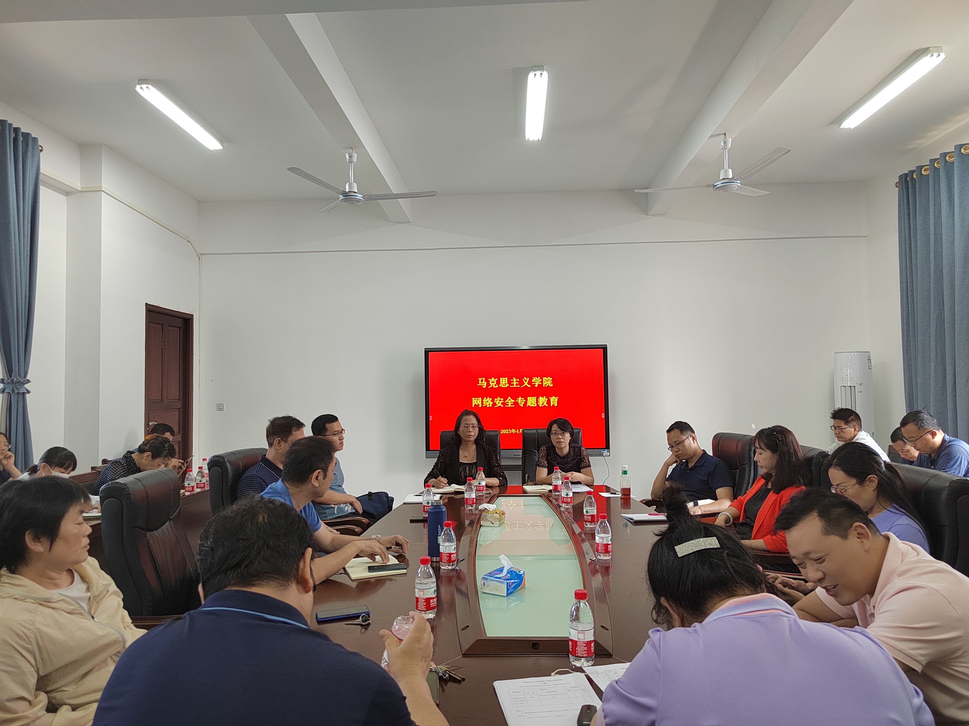 兰岚随后在全体教职工之间传达了2023年全国“两会”精神以及2023年全面从严治党工作会议精神,尤其提到全国“两会”后,全省党员干部大会提出了“海南六项重点工作”,希望全体党员同志为建设海南特色自由贸易港作出贡献。此外,还进行了总体国家安全观教育、意识形态专题教育以及网络安全专题教育。对此,文长春老师从立足国际秩序大变局、立足防范风险大前提和立足发展历史机遇期大背景三方面进行了题为“新时代高校意识形态工作面临的挑战及对策”的专题讲座。通过此次专题学习,进一步增强了全体教职工的责任意识,对于推动学院建设以及学生发展意义重大。