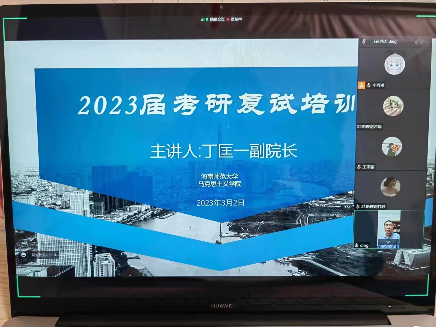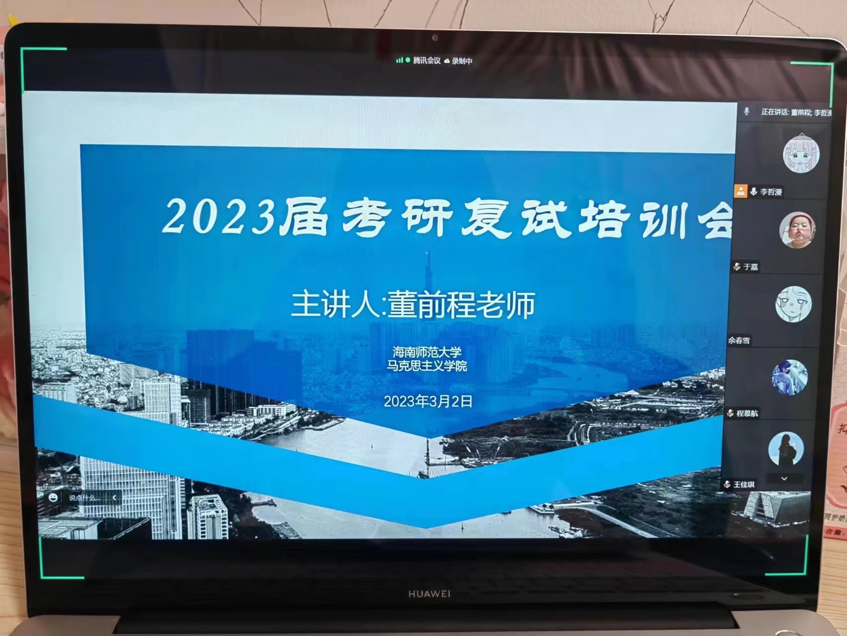 目前,2023届参加考研的毕业生已进入复试准备工作当中,为了使同学们全面了解考研,掌握复试方法、方式、技巧,提高考研成功率,2023年3月2日19:00马克思主义学院组织举行线上考研复试培训会,邀请参加研究生复试的同学们参加会议。