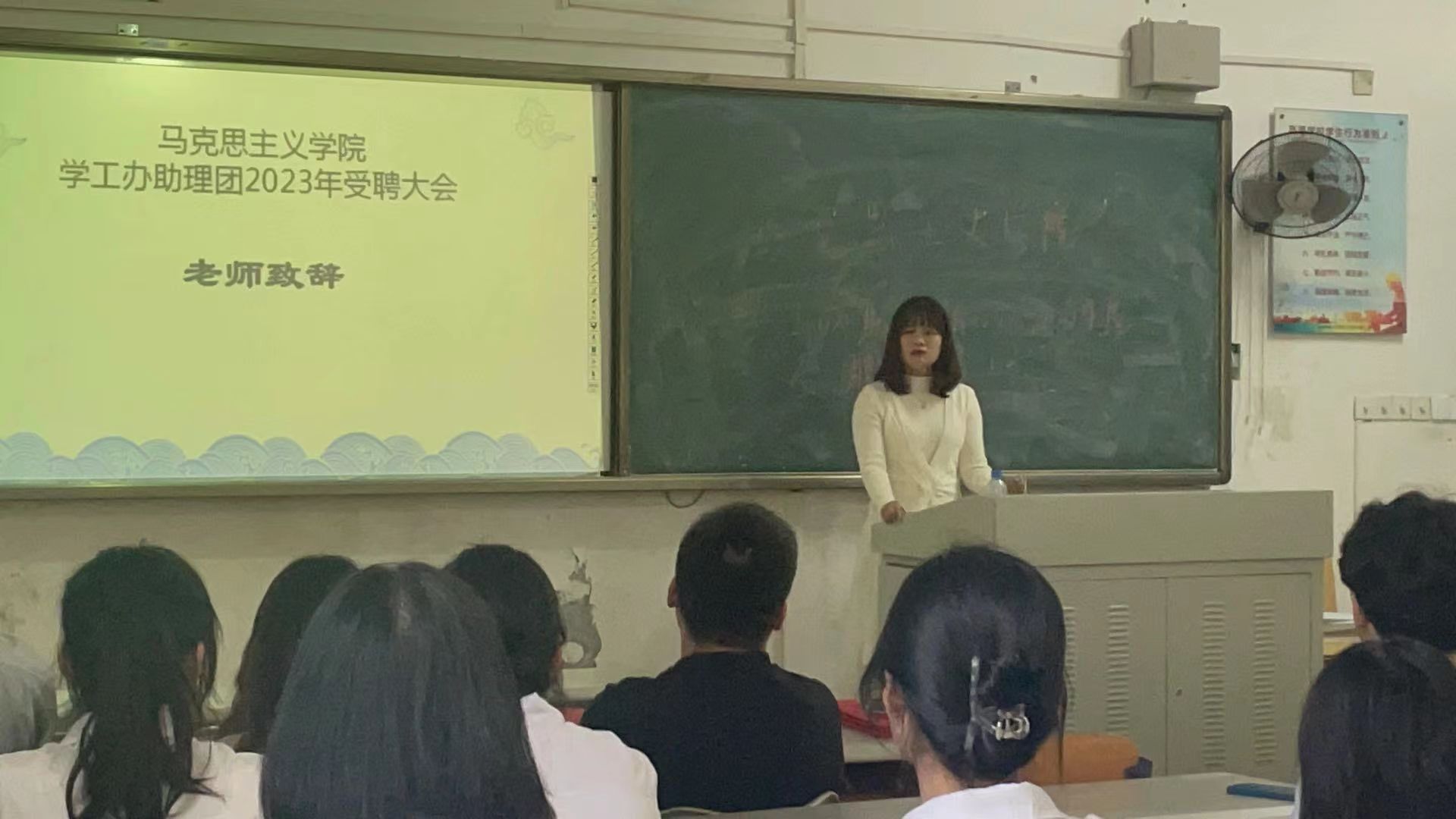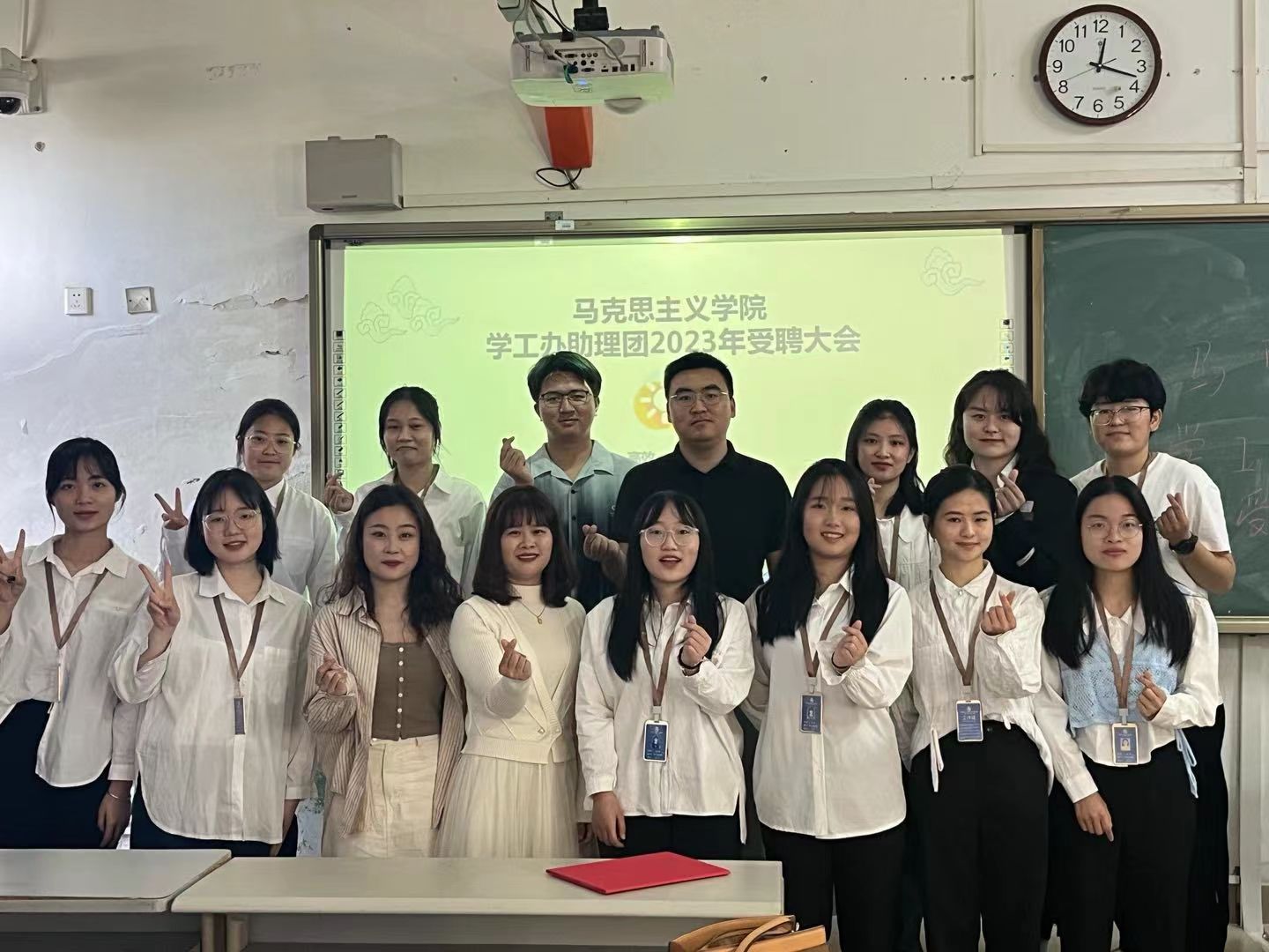 日月不淹,春秋代序。因受大环境影响,马院学工办助理团延期举行的2022年受聘大会正式开始啦!新的学期,新的开始,马院学工办助理团也迎来了几位新的小伙伴,让我们一起来了解这次受聘会吧~本次受聘会于2023年2月28日在文学楼105教室举行。本次参会人员有辅导员李哲漫老师、武超老师;兼职辅导员周晓龙学长、孙文格学姐以及全体助理。
