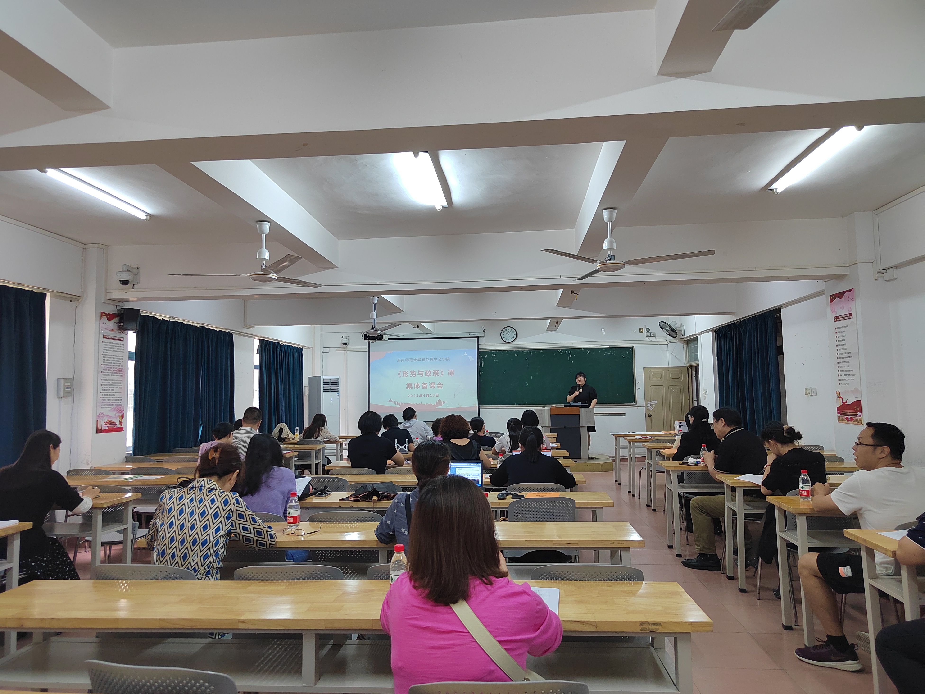 2023年4月13日上午10:00,马克思主义学院《形势与政策》教研室在田家炳306教室组织召开了2022-2023学年第二学期教研室集体备课会,学院党委书记兰岚、本学期承担教学任务的专兼职思政课教师参会。