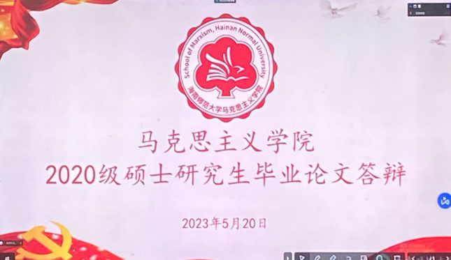 2023年5月20日,2020级马克思主义理论专业硕士学位论文答辩会在海南师范大学桂林洋校区马克思主义学院大楼5楼504与505两个会场分组同时进行。本次答辩会采取线上线下结合的答辩方式。出席第一组(马克思主义基本原理方向、马克思主义中国化方向、中国近现代史基本问题研究方向、国外马克思主义研究方向)的答辩专家分别是海南大学马克思主义学院隽鸿飞教授,海南师范大学马克思主义学院丁匡一教授、姜莉教授、兰岚副教授、李岩副教授,答辩主席由隽鸿飞教授担任。出席第二组(思想政治教育方向)的答辩专家分别是海南大学马克思主义学院赵福生教授,海南师范大学马克思主义学院杨英姿教授、郭根山教授、东秀萍教授、张欢副教授,答辩主席由海南大学赵福生教授担任。2020级马克思主义理论专业共有23名硕士研究生参加本次答辩。2021级和2022级马克思主义理论专业硕士研究生积极旁听学习。
