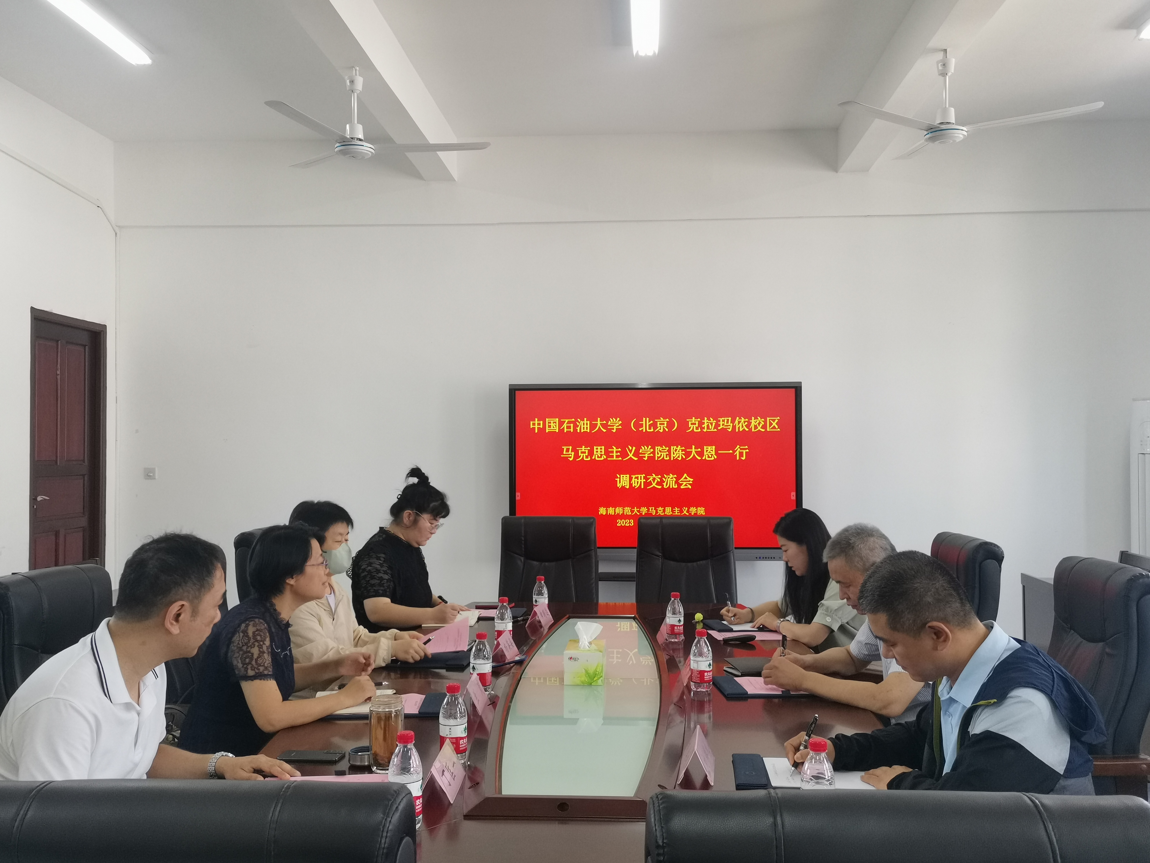 6月30日,原中国石油大学(北京)副校长、克拉玛依校区党委书记、校长,马克思主义学院教授陈大恩、马克思主义学院党委书记刘焕礼、马克思主义学院教师李婧一行三人到我院交流学习,我院党委书记兰岚、副院长丁匡一、副院长杨英姿、副院长申明远参与座谈,会议由党委书记兰岚主持。