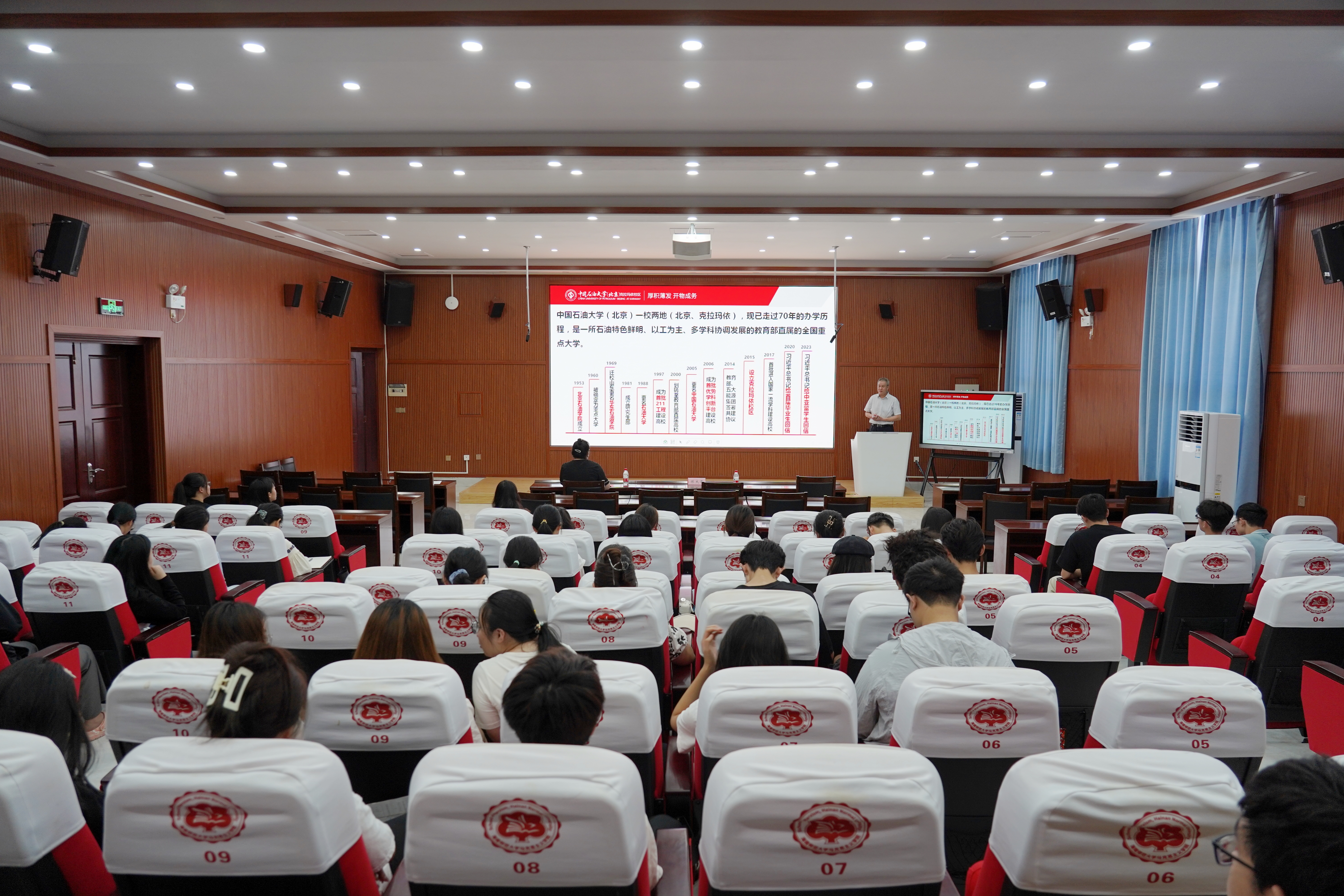 讲座中,陈大恩教授向我校师生介绍了中国石油大学(北京)的建校历史,着重强调了克拉玛依校区的设立背景、办学重要意义及校区定位。陈大恩教授指出,克拉玛依校区注重“高层次、应用型、国际化”的人才培养,着力培养可堪大用、能担重任的西部建设者。随后,陈大恩教授以图文结合的方式,从高水平师资队伍建设、教育教学工作情况、国际交流与合作等十大方向出发,向我校师生展示了克拉玛依校区的使命与国家需求深度融合的优秀办学现状。陈大恩教授表示,于“高站位”“高起点”“高标准”办学,科学融合顶层设计与实践育人,旨在开创高水平大学扎根新疆办学的新格局。