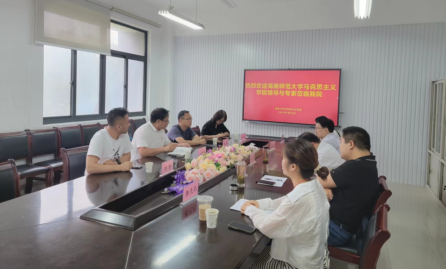 为贯彻落实习近平总书记在全国学校思想政治理论课教师座谈会上的重要讲话和党的二十大精神,推进《中国近现代史纲要》课程建设,传承红色文化、赓续红色基因,加强与兄弟院校合作交流,提升教师教育教学改革的意识和能力,2023年5月29日,《中国近现代史纲要》教研室组织任课教师赴安徽大学交流学习。