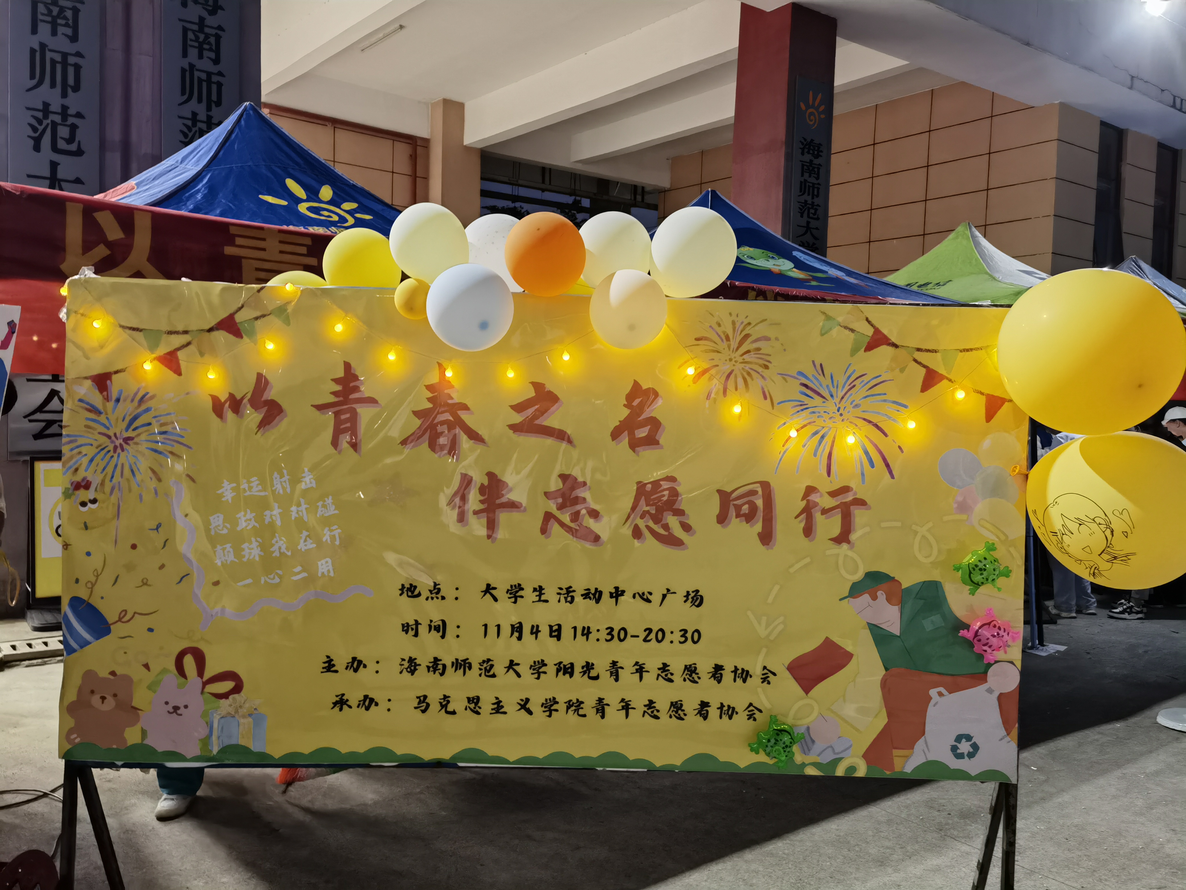 为了弘扬“奉献、友爱、互助、进步”的志愿者精神,增强同学们对志愿活动的了解,激发同学们对志愿服务的热情,海南师范大学马克思主义学院青年志愿者协会于2023年11月4日在学校大学生活动中心广场处举行了志愿服务嘉年华活动。