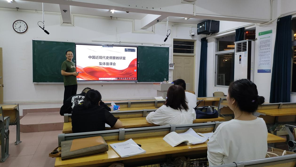 2023年11月12日晚上,“中国近现代史纲要”教研室在田家炳501教室开展集体备课。备课会由教研室负责人王睿主持,全体专兼职教师通过线上线下两种方式参与了会议。
