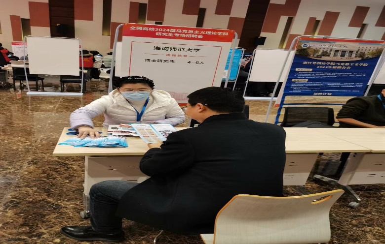 海南师范大学马克思主义学院的招聘双选柜台迎来许多求职就业的硕博毕业生,针对毕业生咨询的各类问题,工作人员予以耐心细致地解答,并为毕业生赠送海南师范大学招聘宣传手册,积极宣传海南省的就业政策和海南师范大学的人才待遇。值得注意的,其中陕西师范大学的研究生院辅导员、山西省高校教师和浙江农业大学老师也前来沟通并提供今年硕博毕业生的信息。