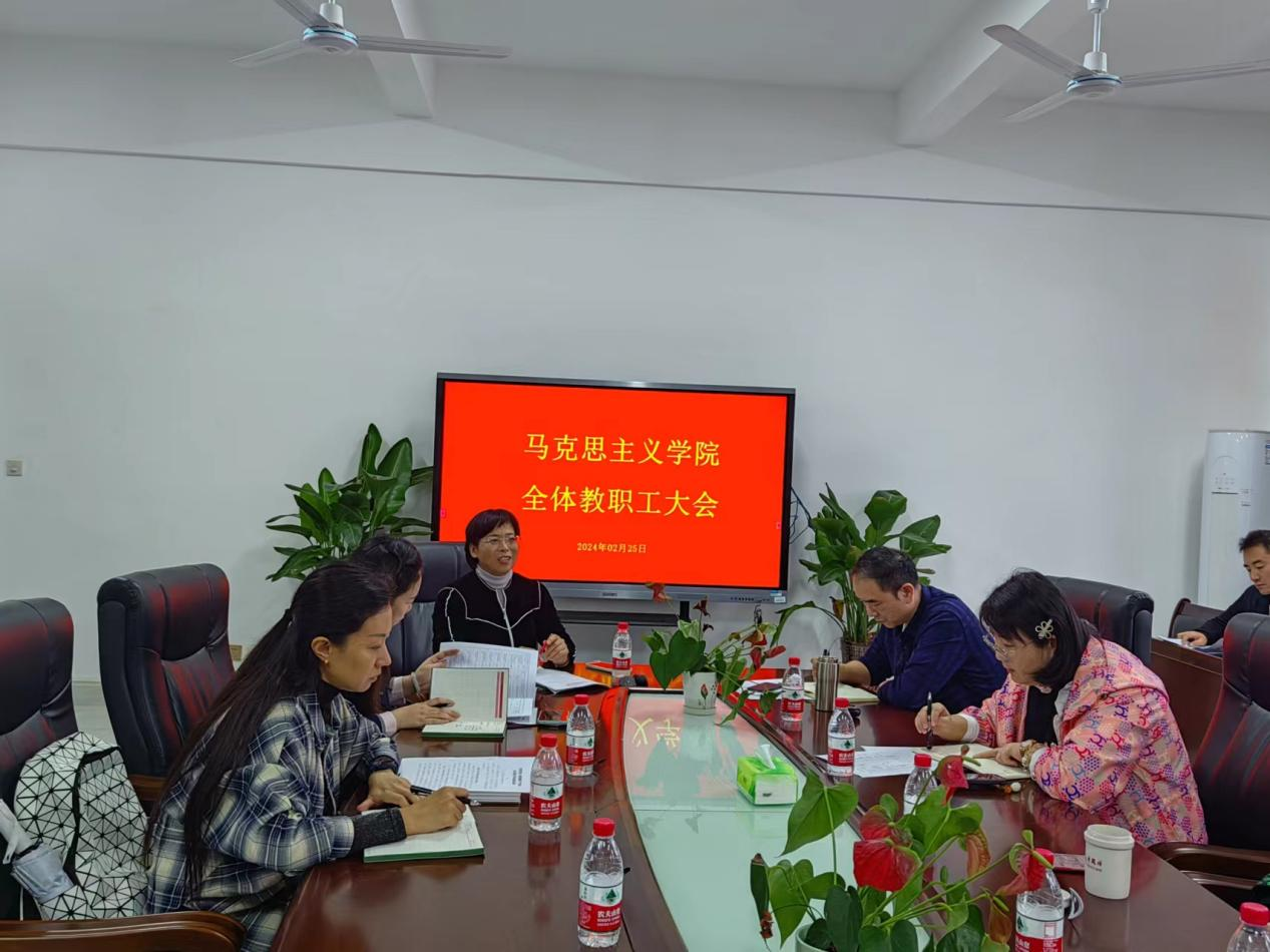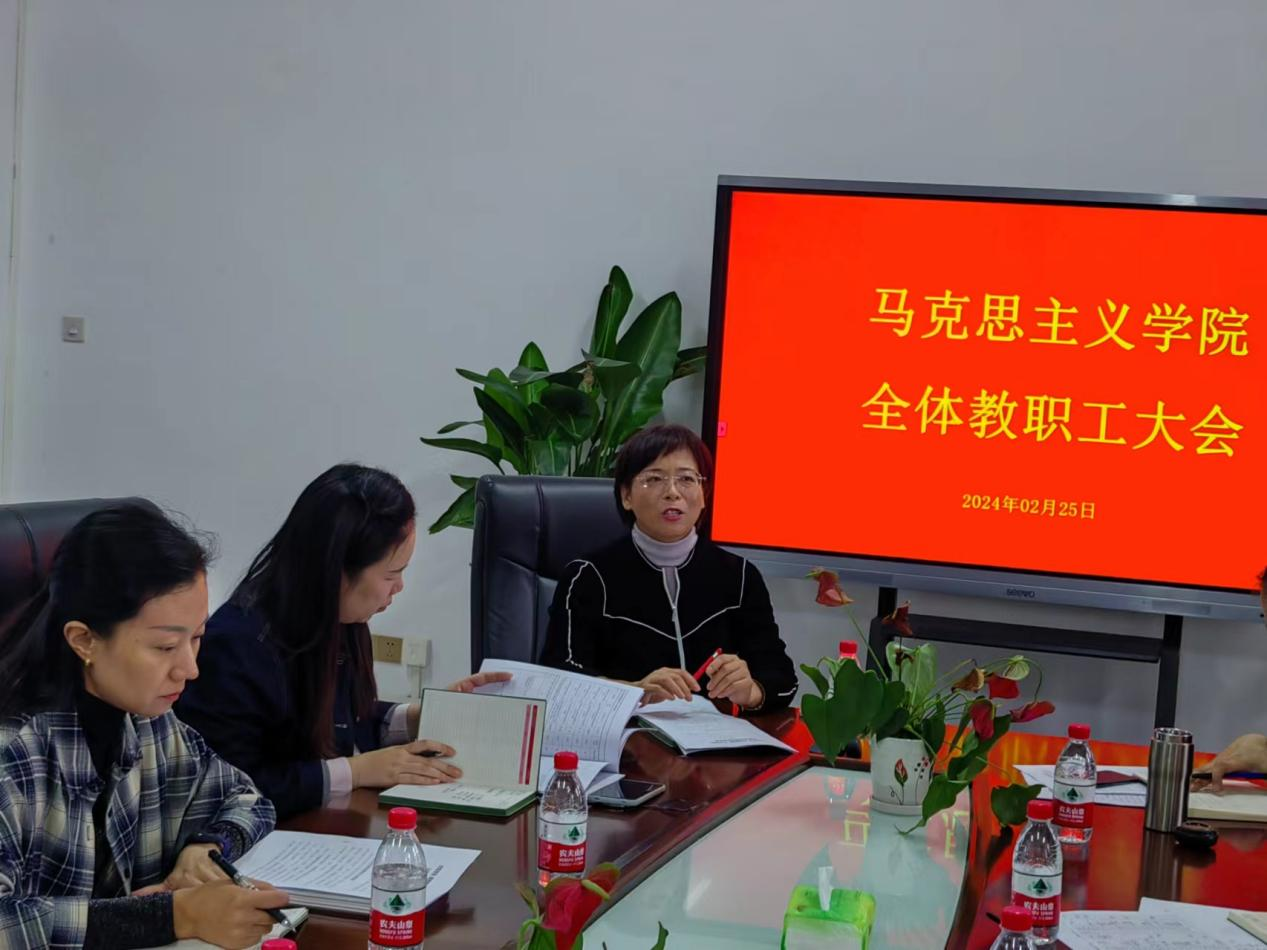2024年2月25日09:00,马克思主义学院全体教职工在马院406室召开新学期开学工作会议,部署各项工作,会议由马克思主义学院常务副院长陈红主持。