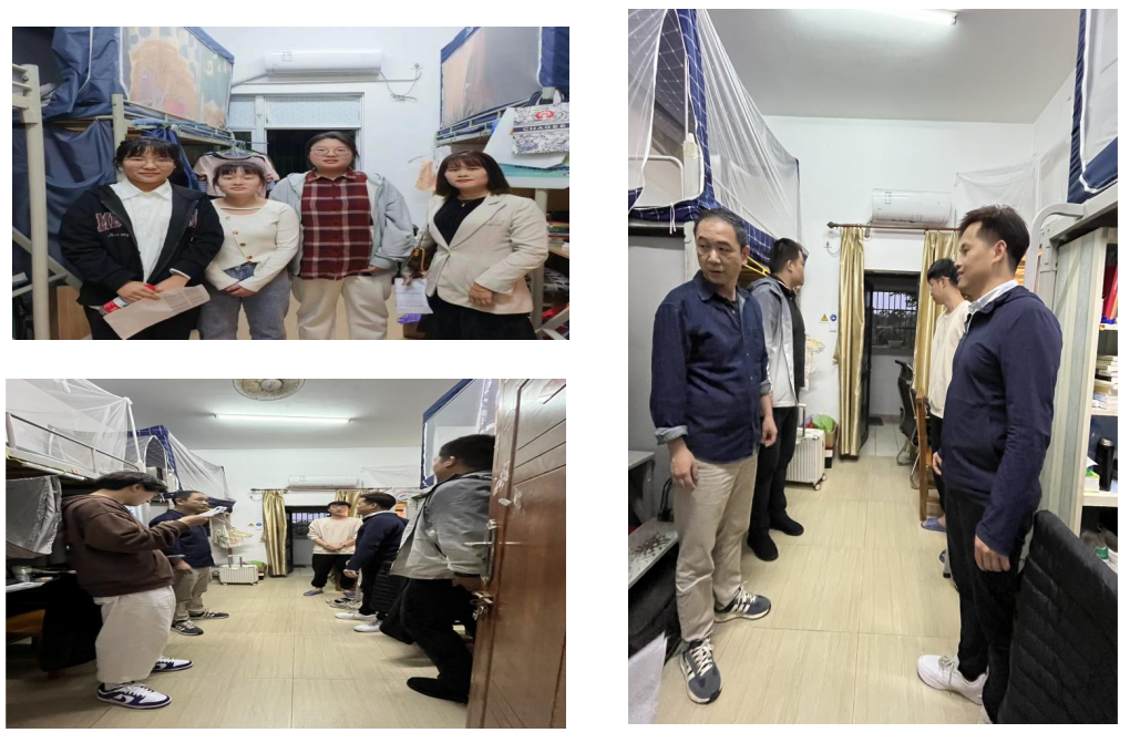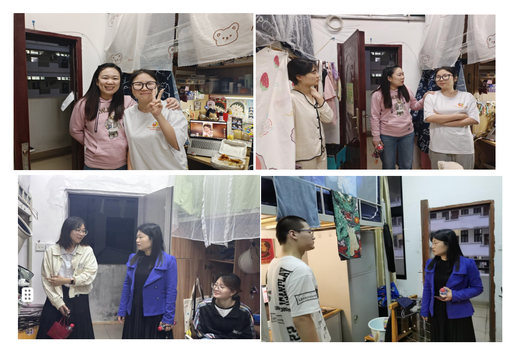 在走访寝室的过程中,学院领导亲切地问候返校学生 ,了解同学们目前在学习、生活中遇到的问题,实时为同学们答疑解惑、解决困难,并且提出宝贵建议,提醒同学们要劳逸结合,关注身体健康与心理健康。新学期新气象,蒋瑜老师鼓励同学们要以更加饱满的心态去面对新学期的学习和生活,提醒同学们在平常生活中务必注意财产安全、用电安全和人身安全,要求同学们加强寝室清洁管理,保持宿舍环境卫生。此外,丁匡一和喻兴琼老师都希望同学们能够尽快调整学习状态,全身心地投入到新学年的学习中去,为实现个人和学院的双赢而努力。新学期的开始,谢丹老师对新学期做出新的学习计划表示重视,嘱咐同学们要“学会制定计划,明确自我方向,合理安排时间,努力提升个人价值”。在生活方面,李哲漫老师嘱咐同学们有任何问题要及时沟通,遇到难题要互帮互助,同舟共济。领导老师们都强调,只有保持身心各方面的健康,学习和生活等等各方面才会更加出色,大学四年才会收获一个全新的自己。
