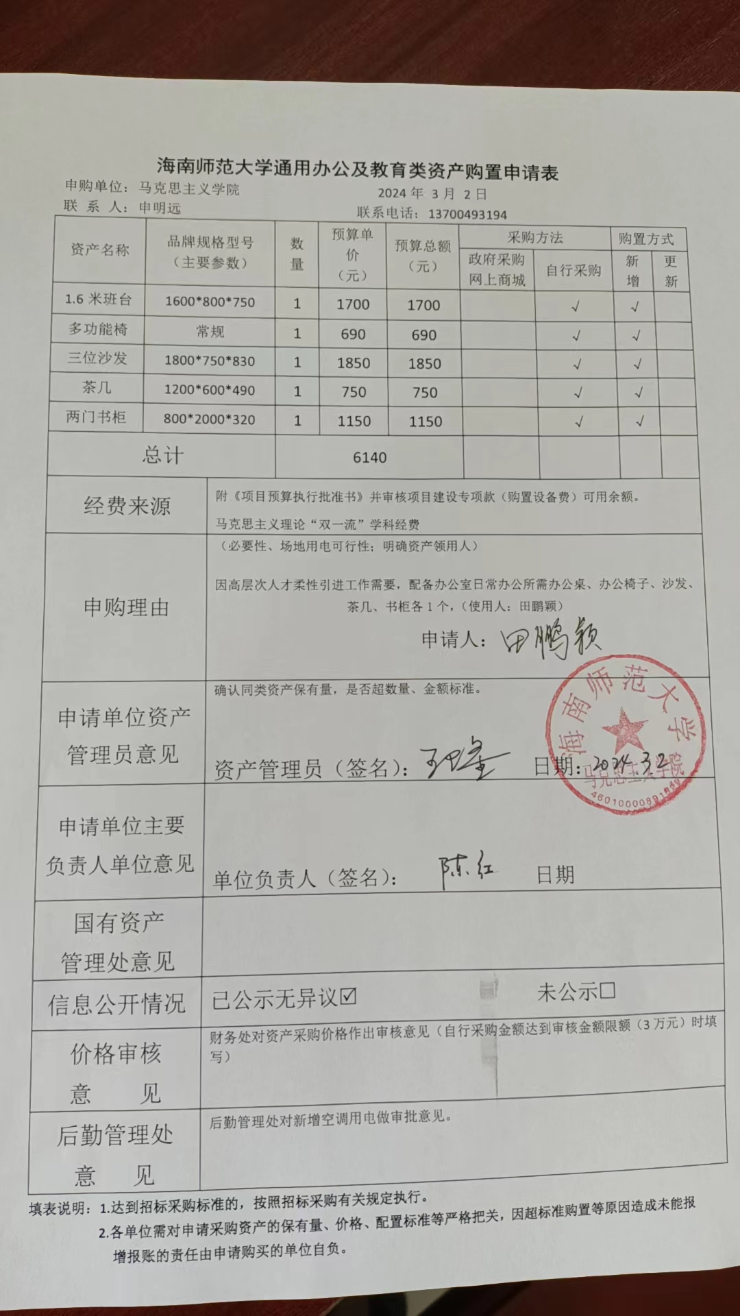 因马院建设需要,购置3个保密柜,一套沙发茶几,一套办公桌椅1个书柜,按照学校固定资产采购要求,现予以信息公开。
