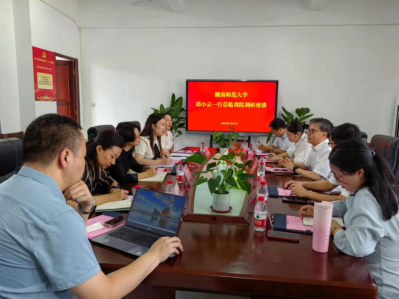 2024年3月31日上午赣南师范大学副校长邱小云一行来我院调研交流,学院党委书记兰岚,副院长谢丹、张妍,原理教研室主任王巍巍以及新思想教研室马超副教授参与座谈。