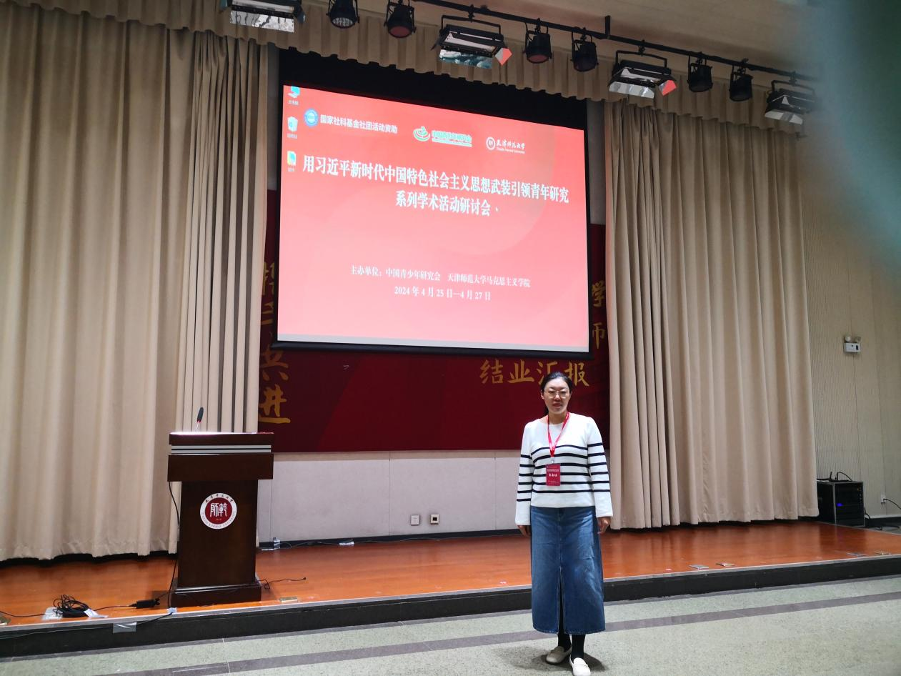 2024年4月25日,我院博士生常彩霞前往天津师范大学参加由中国青少年研究会、天津师范大学马克思主义学院联合主办的“用习近平新时代中国特色社会主义思想武装引领青年研究系列学术活动研讨会”。参加此次会议的还有来自全国各地近20个省市的入选研究成果代表、天津师范大学马克思主义学院师生和相关机构研究者120余人。