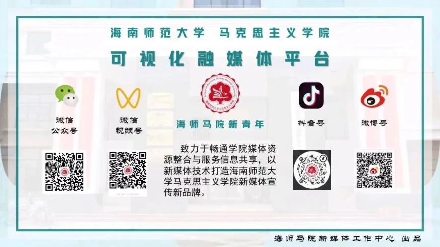 据悉,“海师马院新青年”新媒体工作中心在院党委领导和院团委指导下,始终致力于以新媒体技术打造海师马院宣传新品牌,积极引领思想政治学习浪潮,聚焦学生实际学习生活,构建了以微信公众平台为主体,微信视频号、抖音号、微博号协同发力的可视化融媒体矩阵。近年来,我院“海师马院新青年”新媒体工作中心实现了新媒体平台由一元到多元、宣传形式由单一到丰富的转型升级,开设了“学而时习”、“海马思政”等菜单栏目,宣传质量取得较大进步,学院新媒体影响力获得大幅提升。未来,马院新媒体工作中心将继续把牢正确方向,贴合时代节奏,坚持守正创新,探索发展路径,展现出青年的朝气与活力,讲好马院故事,书写马院新媒体运营与宣传的新篇章!