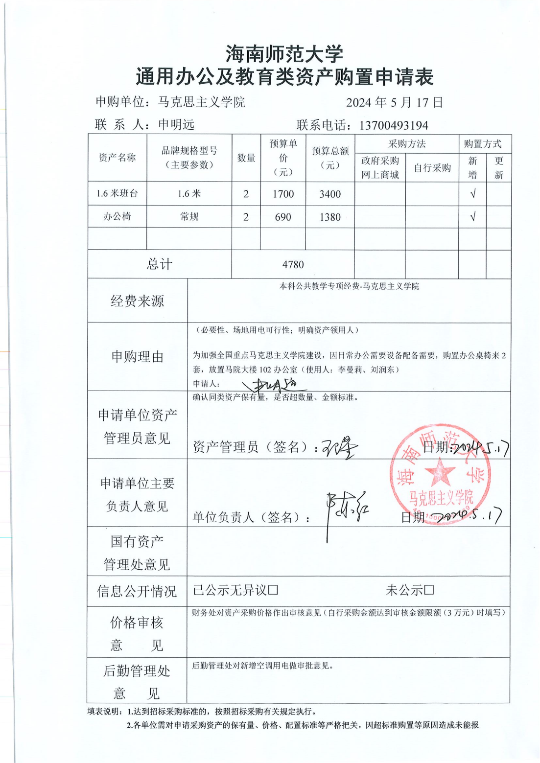 因马院建设需要,办公桌椅2套,按照学校固定资产采购要求,现予以信息公开。