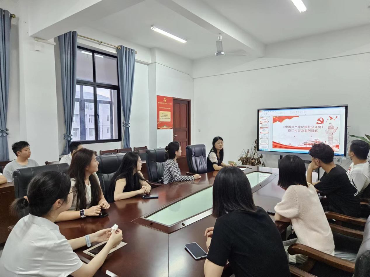 蒋瑜副书记详细为毕业生党员们讲解了《中国共产党纪律处分条例》修订内容,并引用了许多与工作和生活密切相关的案例,提醒党员同志要在日常生活中加强政治理论学习,提高政治站位,做到知行合一。要对党纪国法存有敬畏之心,自觉遵守党的政治纪律和政治规矩,严格遵守党的廉洁纪律和生活纪律,扣好人生的第一粒扣子。