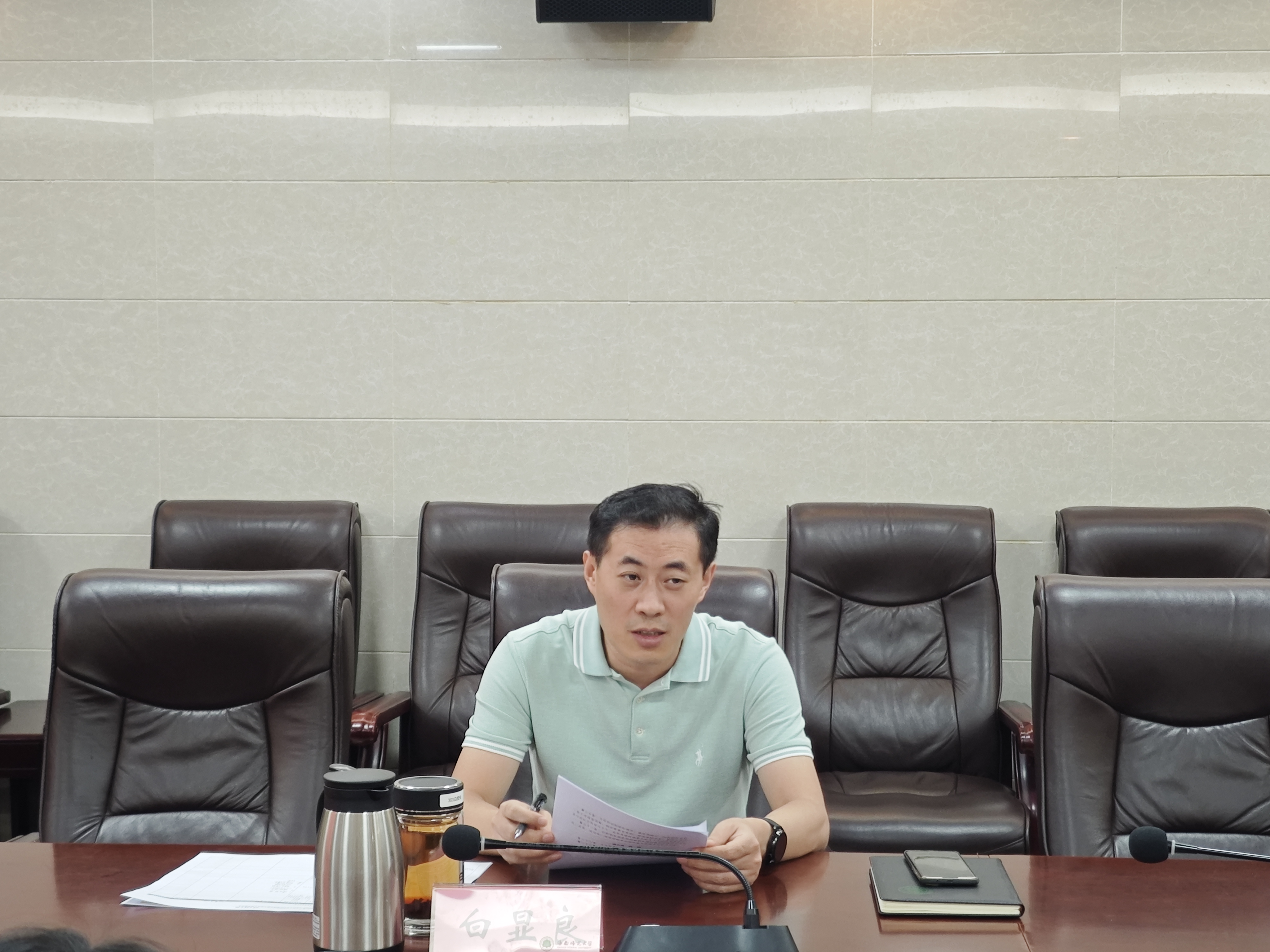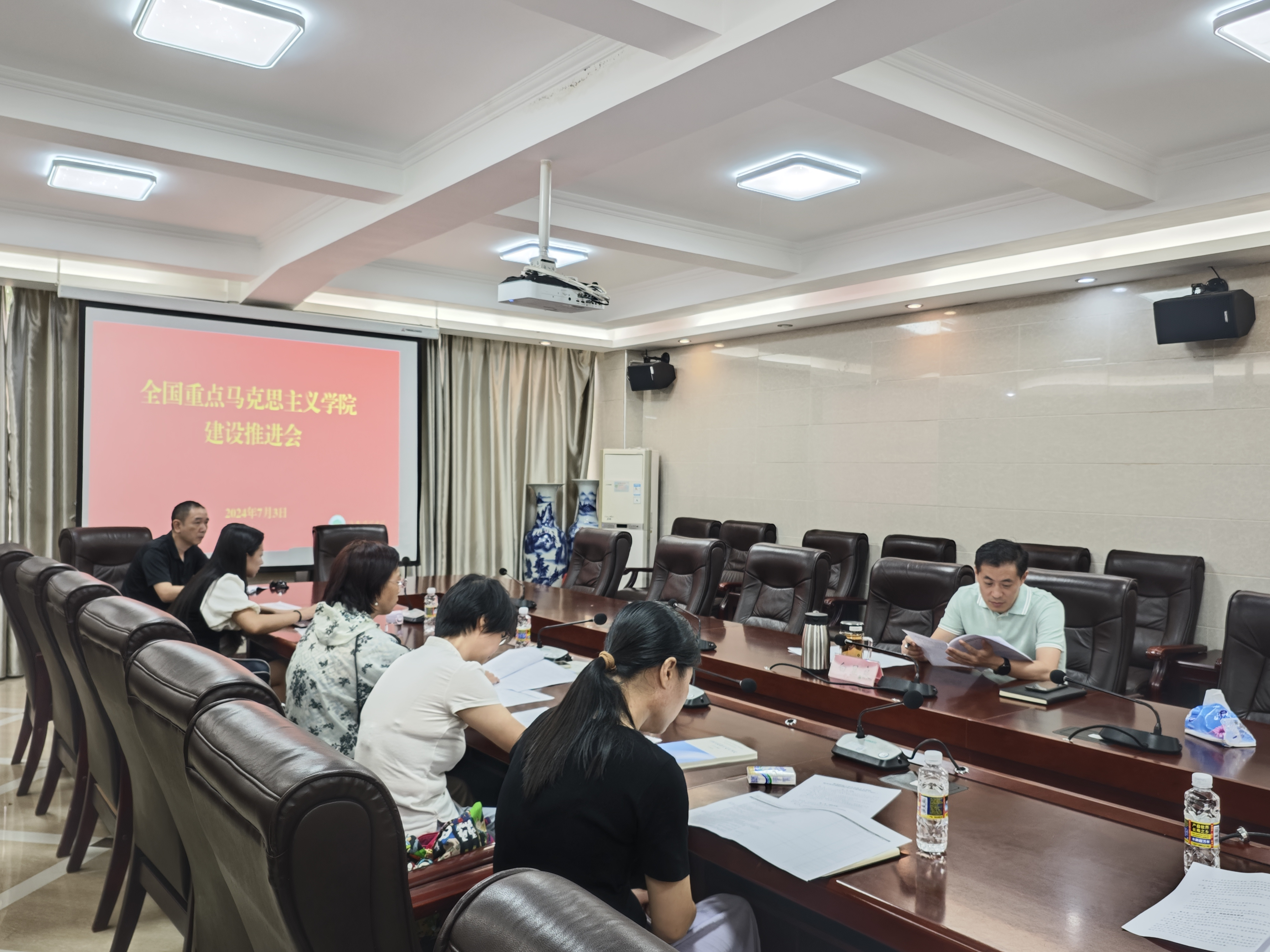 7月3日上午,校党委常委、副校长,马克思主义学院院长白显良在龙昆南第一办公楼一楼会议室召开全国重点马克思主义学院建设推进会,马克思主义学院领导班子参会。