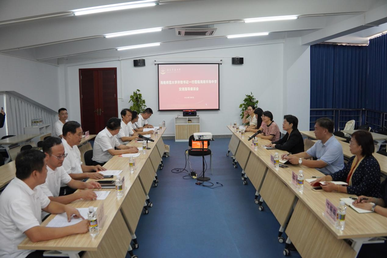 许玫书记全面而细致地介绍了我校在基础建设、学院发展以及人才培养领域所取得的显著成就与进展。她表达了对未来与华海中学建立长期、稳固且富有成效的交流合作关系的热切期望。同时,她希望两校充分发挥各自优势,形成优势互补、资源共享的良好局面,共同开创人才培养与就业工作的新局面,为海南乃至全国的基础教育事业贡献力量。