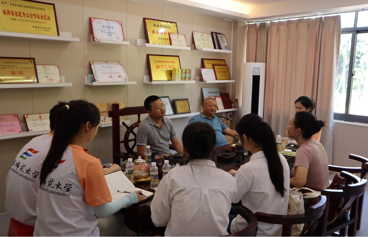 全面推进乡村振兴是新时代建设农业强国的重要任务,习近平总书记指出:“产业兴旺是乡村振兴的重点,是解决农村一切问题的前提。”为了深入贯彻落实这一重要指示精神,探索产业融合助力乡村振兴的有效路径,2024年7月10日-11日,海南师范大学马克思主义学院“振乡村·正青春”理论宣讲与乡村振兴促进团在王巍巍老师的带领下来到海南省琼海市万泉镇胜达休闲农业示范点和琼海温泉发富油茶种植农民专业合作社开展实地调研活动。